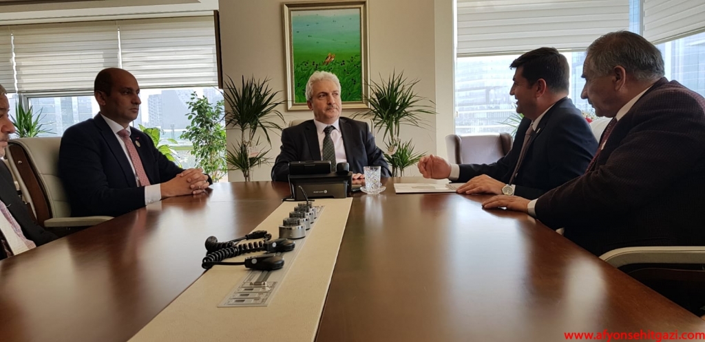 Türkiye Harp Malulü Gaziler Şehit Dul ve Yetimleri Derneği Genel Başkanı Malul Gazi Mustafa Işık,Afyonkarahisar Şube Başkanı İsmail Kumartaşlı ve yönetim kurulu üyeleri Aile Çalışma ve Sosyal Hizmetler Bakan Yardımcılığına atanan Afyonkarahisar 22 ve 23 ncü dönem Ak Parti Milletvekili Ahmet Koca’yı makamında ziyaret etti.