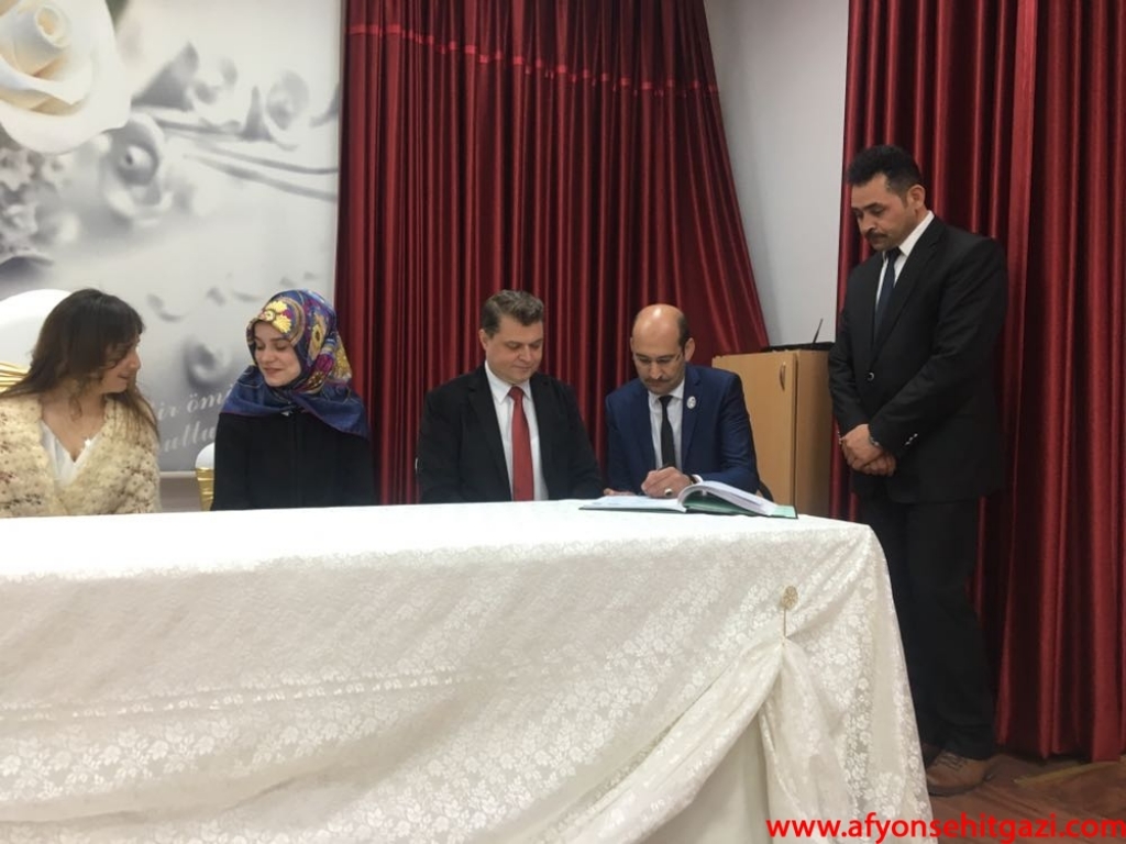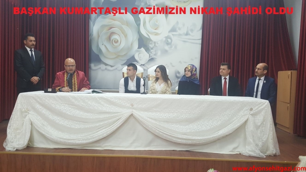 Afyonkaarahisar Belediye Başkanı Burhanettin Çoban’ın kıydığı gazimizin nikah şahidi olarak Afyonkarahisar Vali Yardımcısı Erhan Günay ve Dernek Başkanımız İsmail Kumartaşlı hazır bulundu.