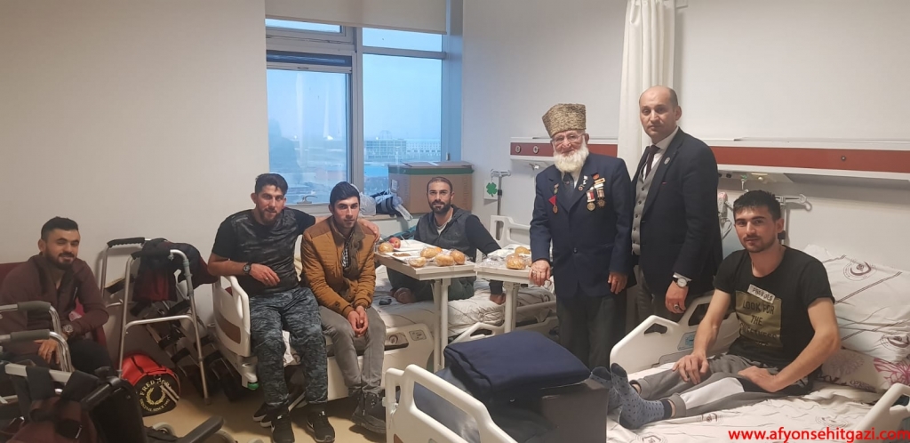 Türkiye Harp Malulü Gaziler Şehit Dul ve Yetimleri Derneği Afyonkarahisar Şube Başkanı İsmail Kumartaşlı 17 Temmuz 2017’de Hakkari Esendere mevkiinden izne gitmek için sivil araçla ilerlerken PKK’lı teröristler tarafından yola döşenen mayının infilak ettirilmesi sonucu yaralanan ve halen tedavisi Afyonkarahisar Sağlık Bilimleri Üniversitesi Fizik Tedavi Merkezinde süren Malül Gazi P.Uzm.Çvş.Süleyman Çelik’i Kıbrıs Gazisi Tahsin Koç ile ziyaret etti.