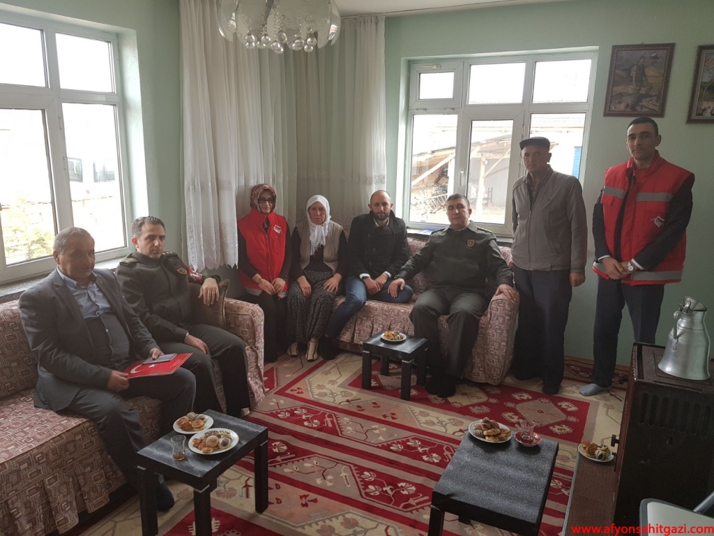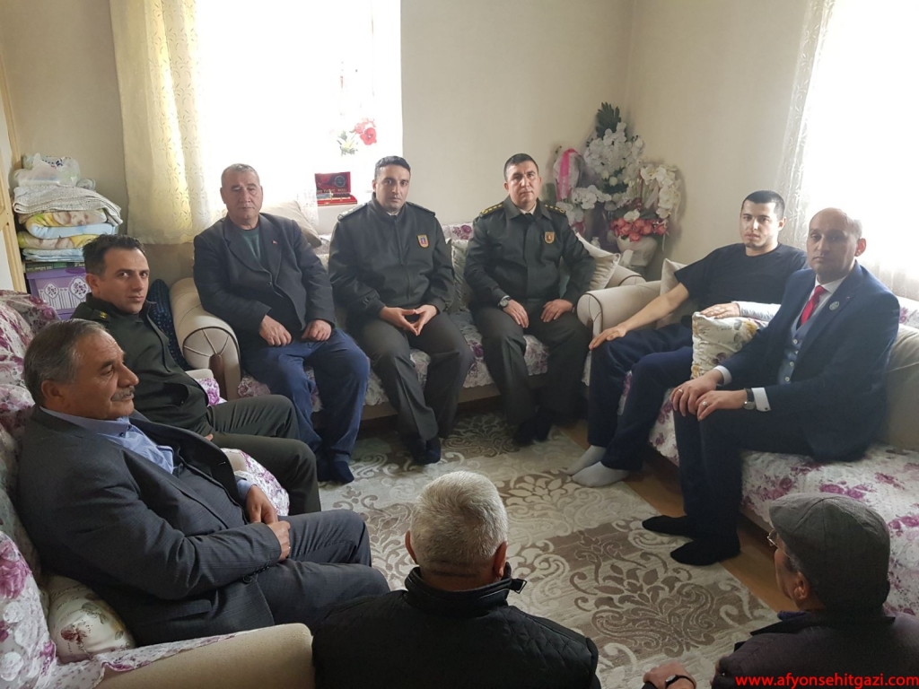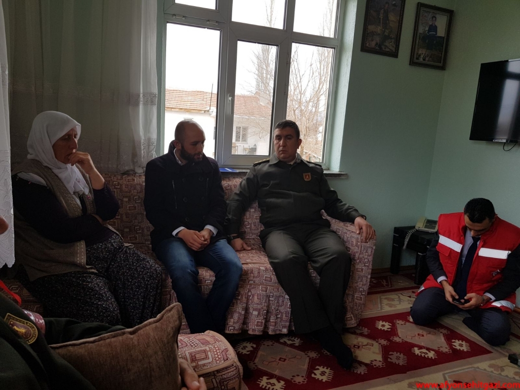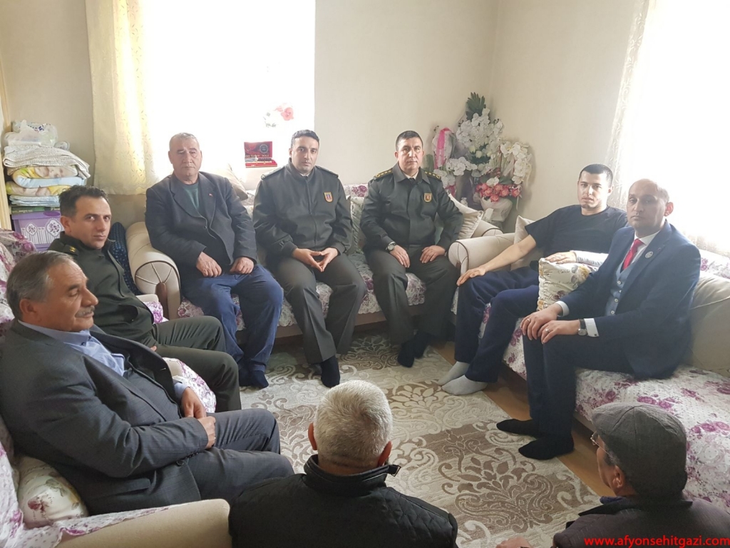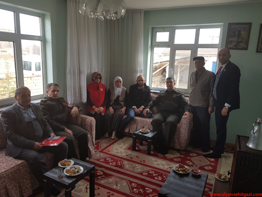 İlk ziyaret Şuhut İlçesinde evinde istirahatte bulunan Afrin Gazisi Piyade Uzman Çavuş Ahmet Çatalkaya’ya yapıldı. Ziyarete Şuhut İlçe Jandarma Komutanı J.Bnb. Ümit Şevik, Afyon Garnizon Komutanlığı Şehit Gazi İşlem Subayı Kd. Alb. Fatih Sağdıç, Afyon Merkez Komutanı P.Yzb. Hanifi Savaş ile Türkiye Harp Malülü Gaziler Şehit Dul ve Yetimleri Derneği Afyonkarahisar Şube Başkanı Malul Gazi İsmail Kumartaşlı katıldı.