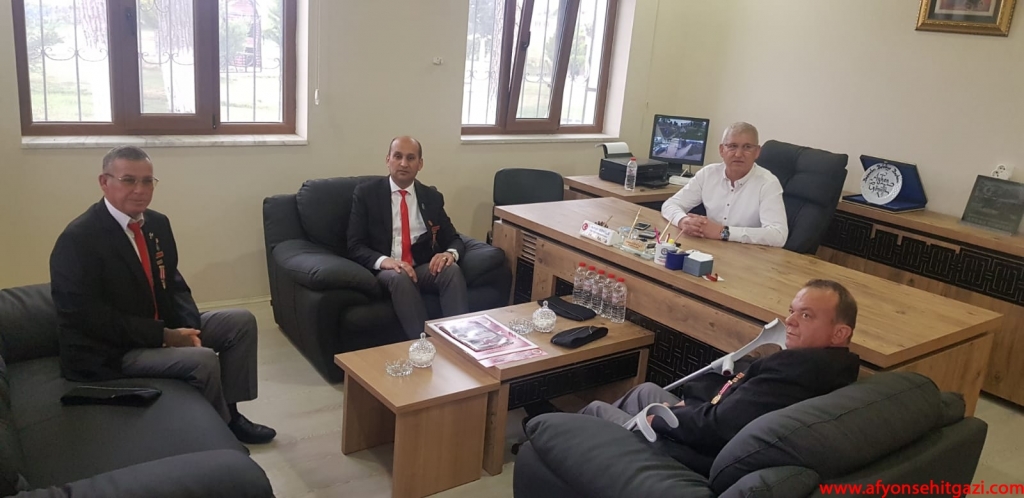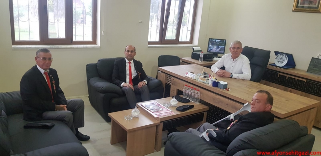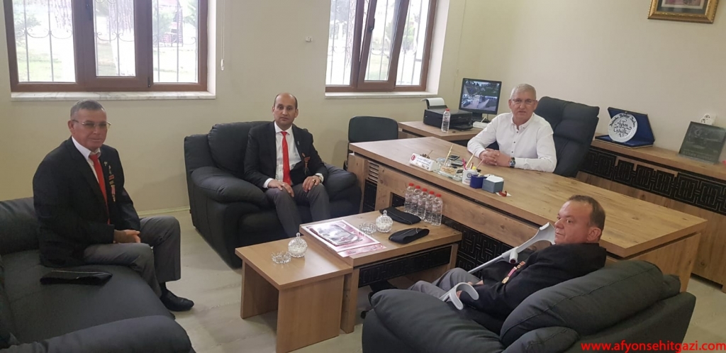 Türkiye Harp Malülü Gaziler Şehit Dul ve Yetimleri Derneği Afyonkarahisar Şube Başkanı İsmail KUMARTAŞLI ,Türkiye Harp Malülü Gaziler Şehit Dul ve Yetimleri Derneği Afyonkarahisar Dinar Temsilcisi Hasan CEYLAN, Dazkırı temsilcisi Gazi Muharrem AYDIN ve Şehit babası Muzaffer BİRGÜL ile birlikte 31 Mart seçimlerinde ikinci defa Belediye Başkanı seçilen Başmakçı Belediye Ayhan Gönüllü’yü makamında ziyaret etti. Başkan KUMARTAŞLI ve beraberindeki heyyet yeni görevinde başarılar dileyerek bir süre sohbet etti.