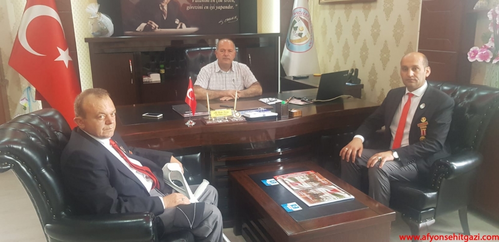 Türkiye Harp Malülü Gaziler Şehit Dul ve Yetimleri Derneği Afyonkarahisar Şube Başkanı İsmail KUMARTAŞLI ,Türkiye Harp Malülü Gaziler Şehit Dul ve Yetimleri Derneği Afyonkarahisar Dinar Temsilcisi Hasan CEYLAN, Dazkırı temsilcisi Gazi Muharrem AYDIN ve Şehit babası Muzaffer BİRGÜL ile birlikte 31 Mart seçimlerinde belediye başkanı seçilen Evciler Belediye Başkanı Ali Dede SAVAŞ’ı makamında ziyaret etti Başkan KUMARTAŞLI ve beraberindeki heyyet yeni görevinde başarılar dileyerek bir süre sohbet etti.