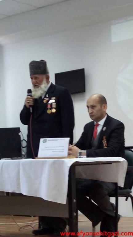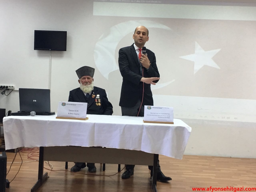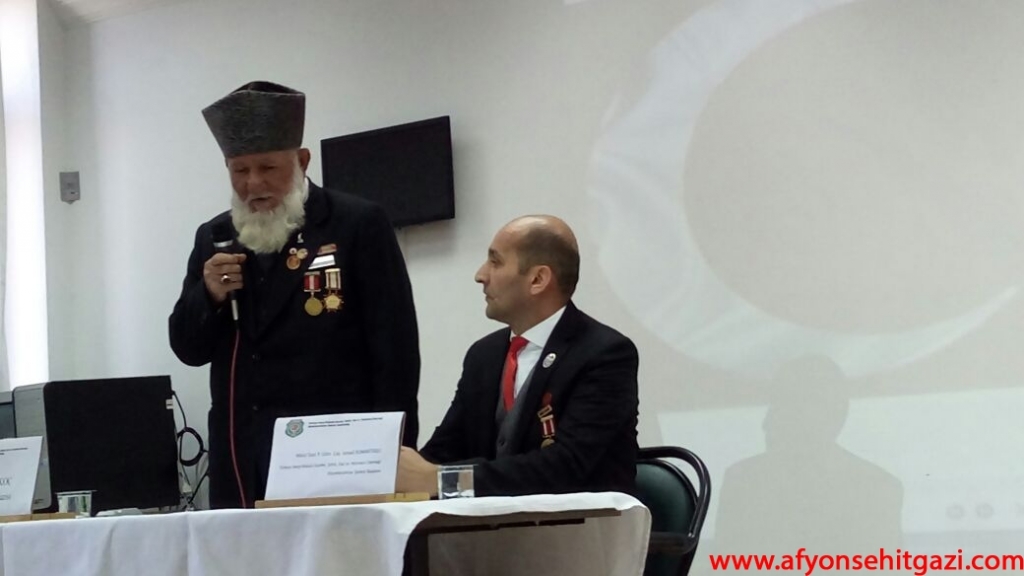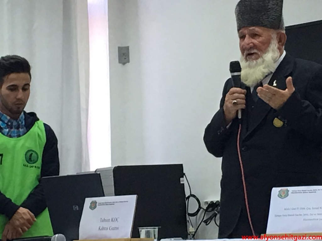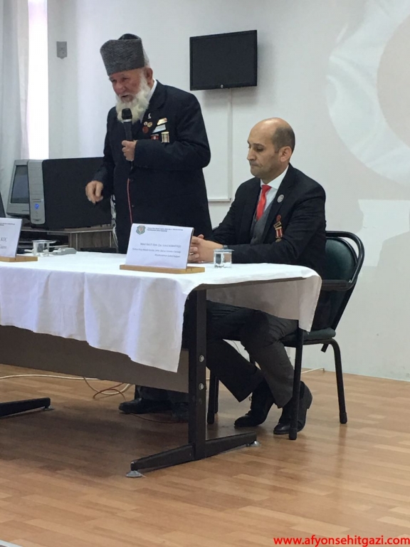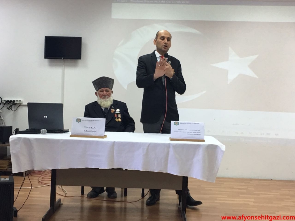 Türkiye Harp Malulü Gaziler, Şehit, Dul ve Yetimleri Derneği Afyonkarahisar Şubesi Başkanı Malul Gazi P. Uzm. Çvş. İsmail KUMARTAŞLI kendisini tanıtarak yaptığı konuşmasında; Başından geçen gazilik anılarını, fiziksel ve psikolojik etkilenmelerini ve kendisinde bıraktığı izleri paylaştı. 101. yılını kutladıkları Dernek’lerini tanıtarak tarihsel gelişimi üzerinden bu günkü durumu ile ilgili bilgiler verdi. Şehitlik payesine ulaşanlarla ilgili Dernek olarak cenaze ve taziye esnasında yapılanları anlatarak, bir tek çakıl taşını dahi düşmanlara vermeyip, gerekirse yine savaşa gidip vatan için canını feda edebileceğini, terör örgütlerine yataklık edenlerin geçmişte de olduğunu ve asla yılmayacaklarını, PKK terör örgütünün nasıl gelişim gösterdiği ve ülkemize ne tür zararlar verdiği üzerine bilgilendirmeler yaptı.