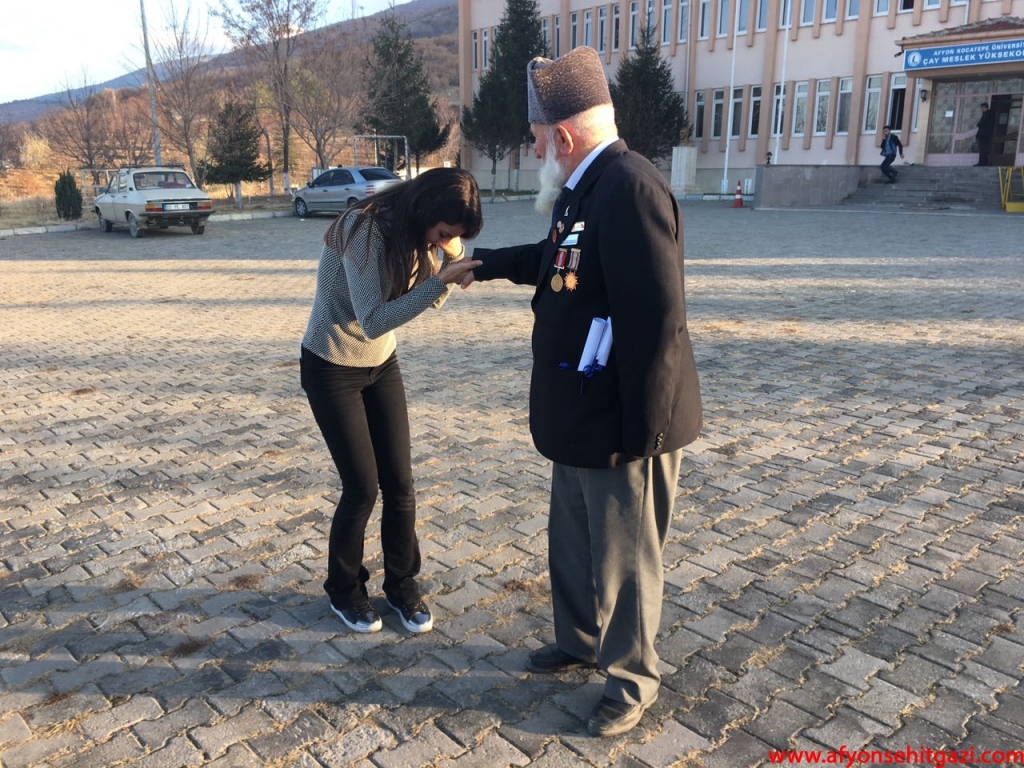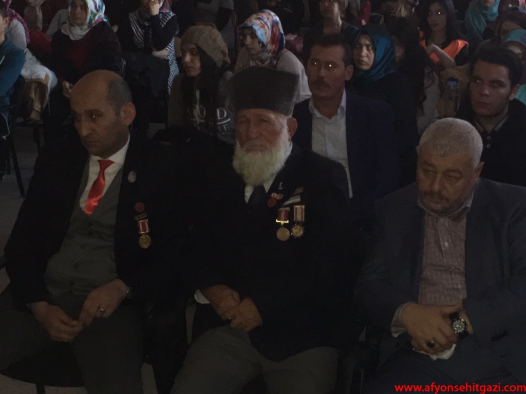 Ulu önderimiz Mustafa Kemal Atatürk ve Şehitler’imize atfen saygı duruşunun devamındaki İstiklal Marşı’mızın dinletisi ile başlatılan etkinlikte katılımcılarımız olan Türkiye Harp Malulü Gaziler, Şehit, Dul ve Yetimleri Derneği Afyonkarahisar Şubesi Başkanı Malul Gazi P. Uzm. Çvş. İsmail KUMARTAŞLI ve Kıbrıs Gazisi Tahsin KOÇ’un sunumlarının ardından, sırasıyla sahneye davet edilmişlerdir.
