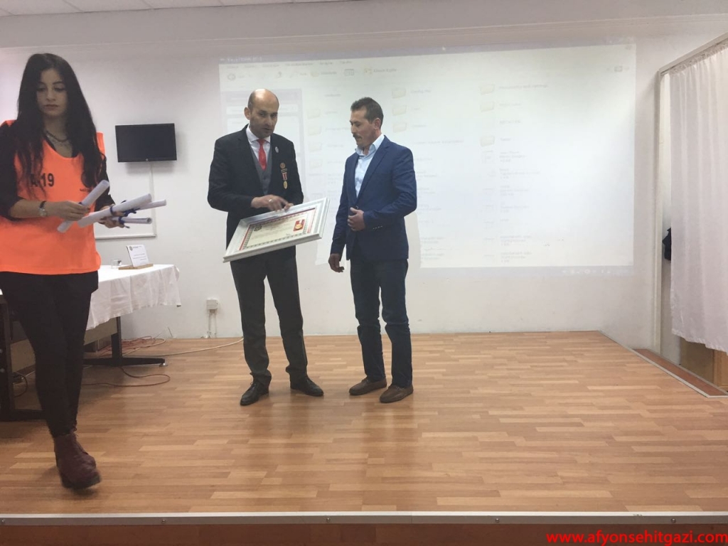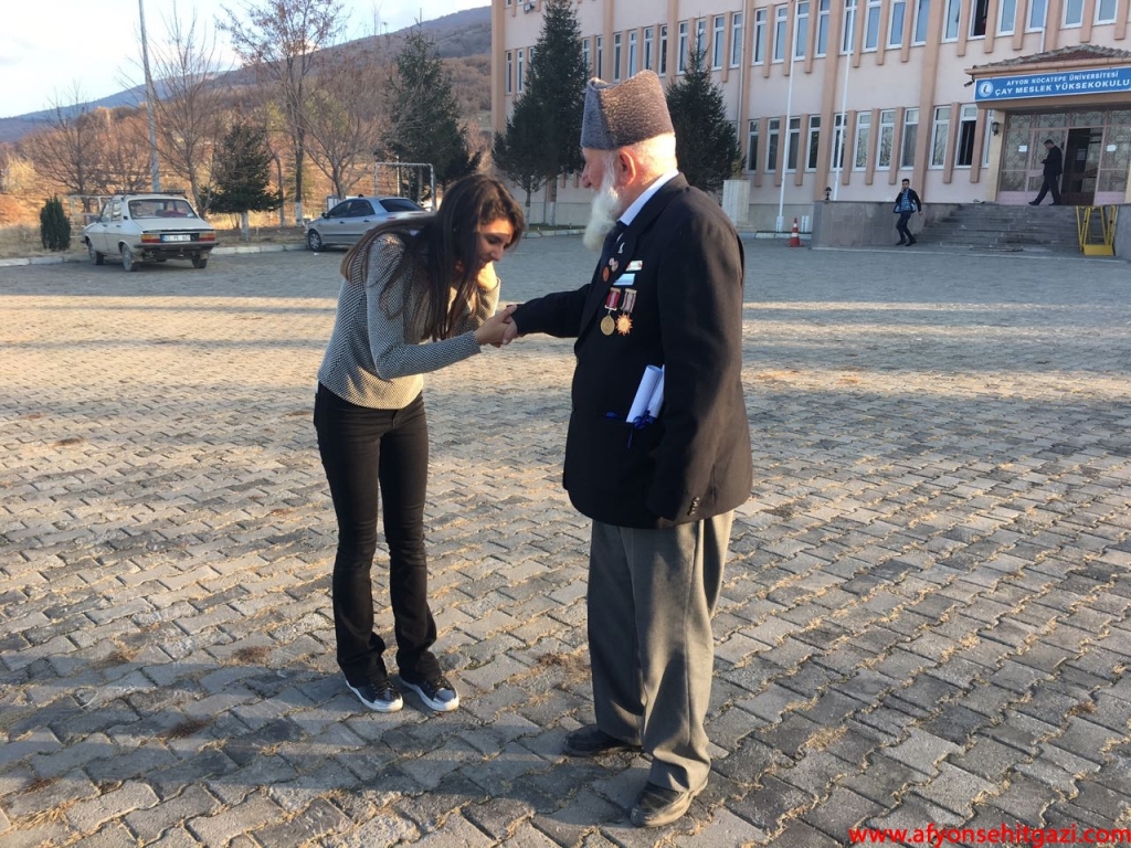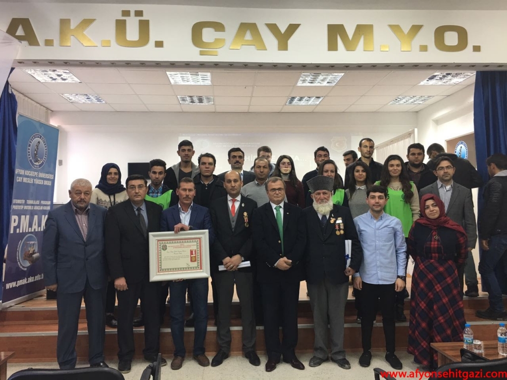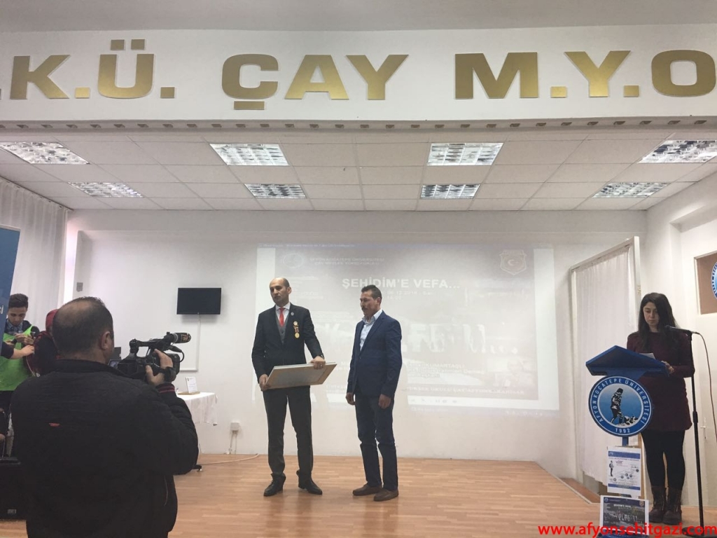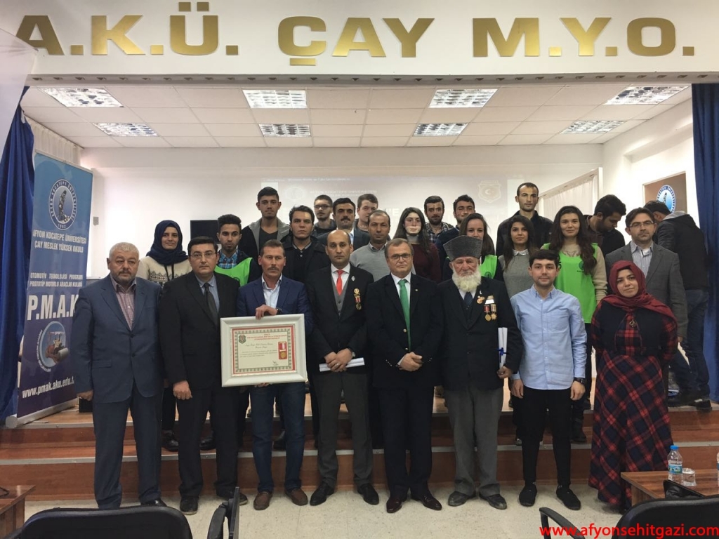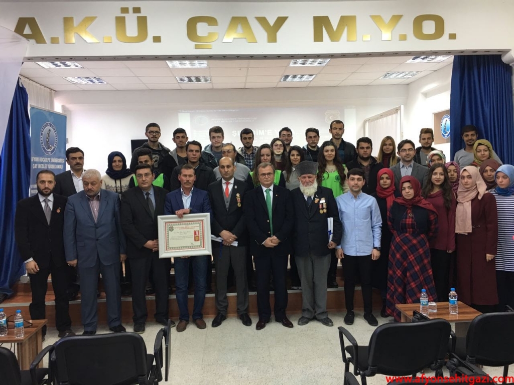 Etkinlik sonrasında Şehit Aileleri’ne yönelik göstermiş olduğu duyarlılık gereği İlçe’miz dahilinde düzenlediği kampanyası nedeni ile İlçe’miz işletmecilerinden Ramazan DOĞAN’a Türkiye Harp Malulü Gaziler, Şehit, Dul ve Yetimleri Derneği Afyonkarahisar Şubesi Başkanı Malul Gazi P. Uzm. Çvş. İsmail KUMARTAŞLI tarafından teşekkür plaketi takdimi ve devamında katılımları nedeni ile Kıbrıs Gazisi Tahsin KOÇ’a Meslek Yüksekokulu’muz Müdür Yardımcısı Öğr. Gör. Hasan ORUNCAK tarafından Organizasyon afişi ve teşekkür yazısı takdimi, Türkiye Harp Malulü Gaziler, Şehit, Dul ve Yetimleri Derneği Afyonkarahisar Şubesi Başkanı Malul Gazi P. Uzm. Çvş. İsmail KUMARTAŞLI’ya Çay Ticaret ve Sanayi Odası Yönetim Kurulu Başkanı’mız Salih KAYGISIZ tarafından Organizasyon afişi ve teşekkür yazısı takdimlerinin sonrasında günün anısına hatıra resimleri çekimleri ile nihayetlendirilmiştir.