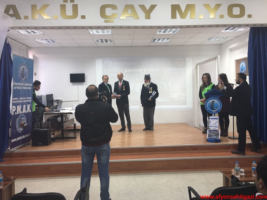MeslekYüksekokulu’muz ile Türkiye Harp Malulü Gaziler, Şehit, Dul ve Yetimleri Derneği Afyonkarahisar Şubesi Başkanlığı koordinasyonluğunda 06 Aralık 2016 tarihinde, Konferans Salonu’muzda Şehidim’e Vefa… temalı Seminer gerçekleştirildi.