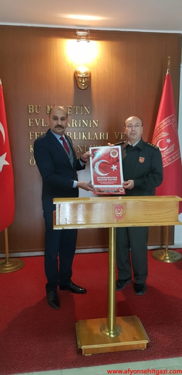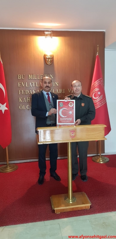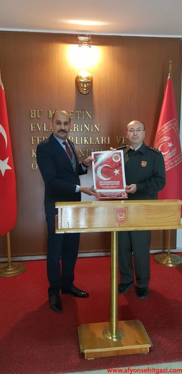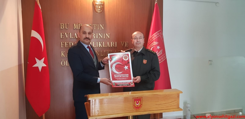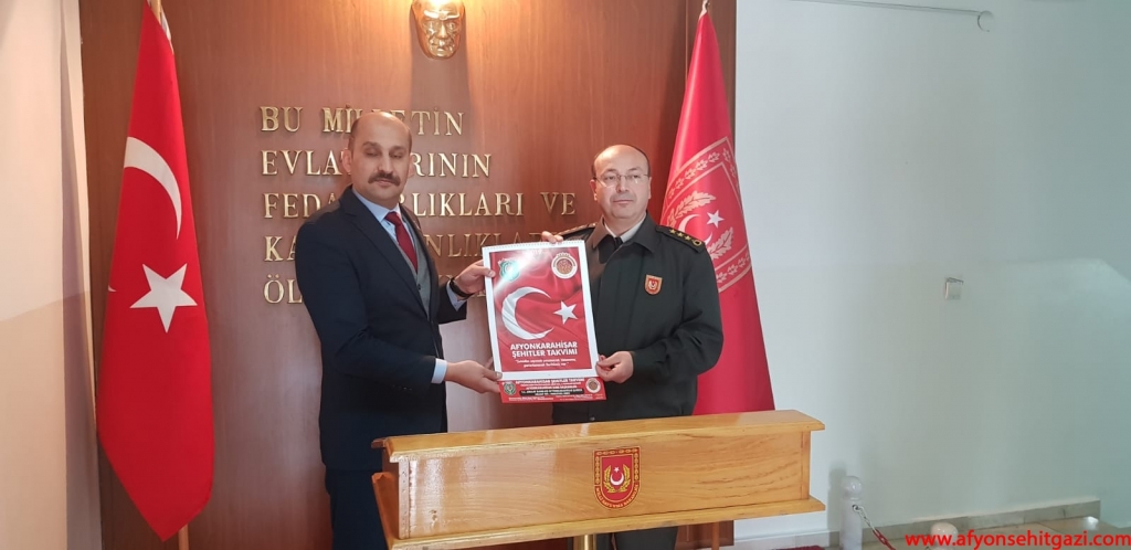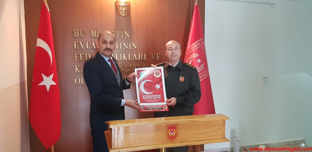 Karşılıklı bilgi alış verişinin yapıldığı ziyarette Afyonkarahisar Asker Alma Bölge Başkanı Per.Kd.Alb. Ahmet Karadayı’ya Türkiye Harp Malulü Gaziler, Şehit Dul ve Yetimleri Derneği Afyonkarahisar Şube Başkanı İsmail Kumartaşlı tarafından 2019 yılı Şehitler takvimi hediye edildi.