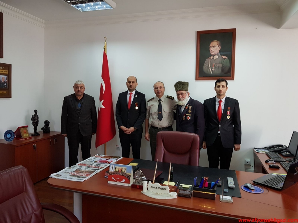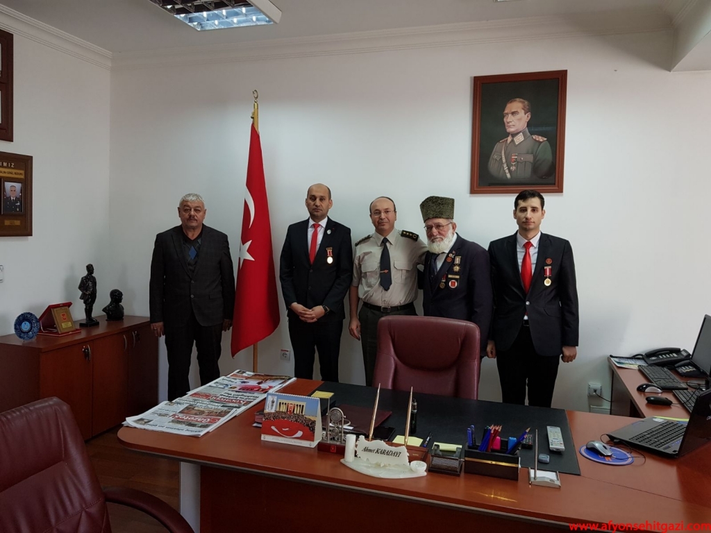 Milli Savunma Bakanlığı tarafından Askeralma Bölge Başkanlığı görevine atanan Per. Alb. Ahmet Karadayı’ya dernek başkanımız Malül Gazi İsmail Kumartaşlı, Kıbrıs Gazisi Tahsin Koç, Şehit Babası Mustafa Çınar ve Malül Gazi Emre Öztürk hayırlı olsun ziyaretinde bulundular. Başkan Kumartaşlı Başkan Karadayı’ya Afyonkarahisar şehitleri gazileri ve dernek çalışmaları hakkında bilgiler verdi, karşılıklı bilgi alışverişinde bulundular. Askeralma Bölge Başkanı Per. Alb. Ahmet Karadayı ziyaretten duyduğu memnuniyeti dile getirerek teşekkürlerini sundu.