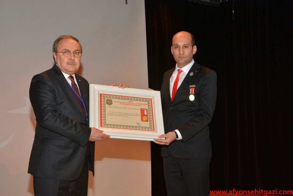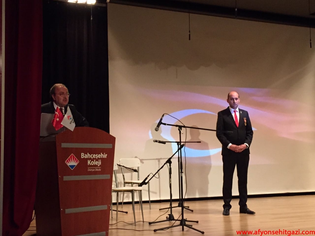Türkiye Harp Malulü Gaziler Şehit Dul ve Yetimleri Afyon Şubesi Dernek Başkanı Malül Gazi P.Uzm.Çvş. İsmail Kumartaşlı, gerek hastanelerinde gerekse okullarında verdiği desteklerden dolayı Afyon Bahçeşehir Koleji Yönetim Kurulu Başkanı ve Kurucusu Abdullah TAŞ’a Şehit yakınları ve Dernek adına Teşekkür Plaketi ve Madalyası takdim etti. Söyleşi Programına katılan konuşmacılara da
