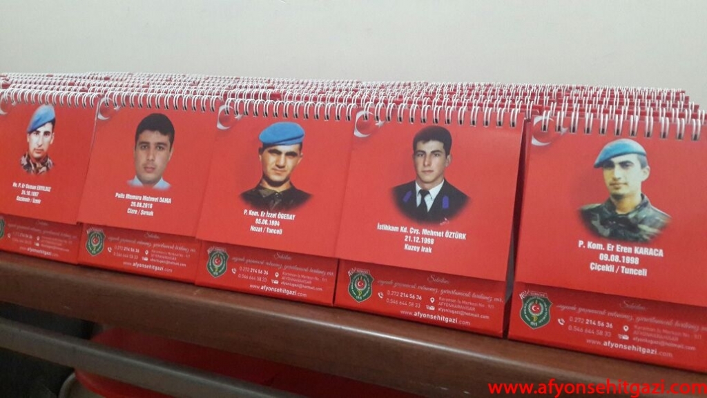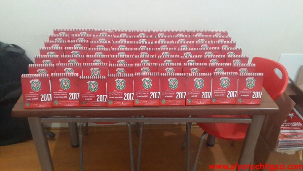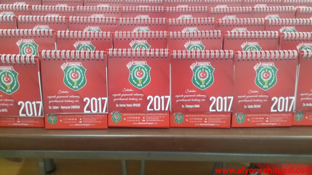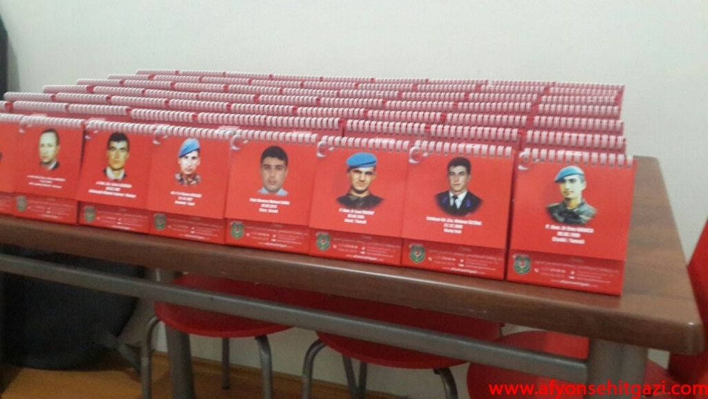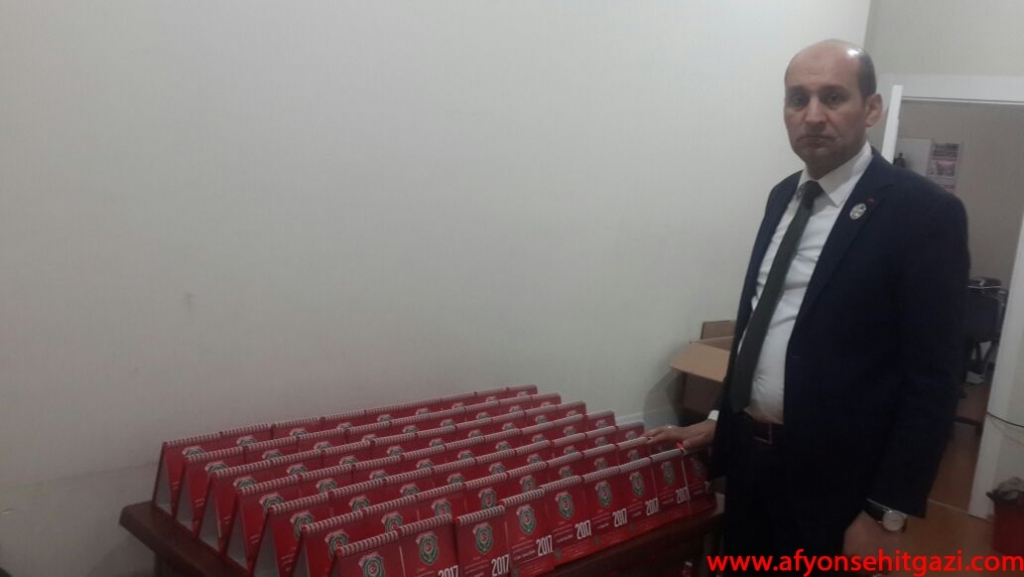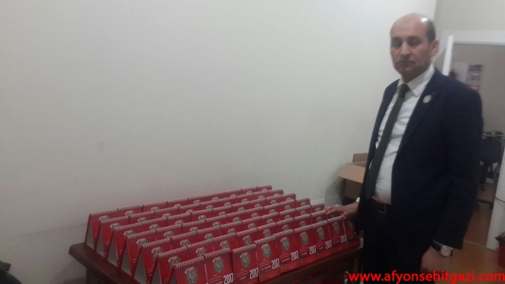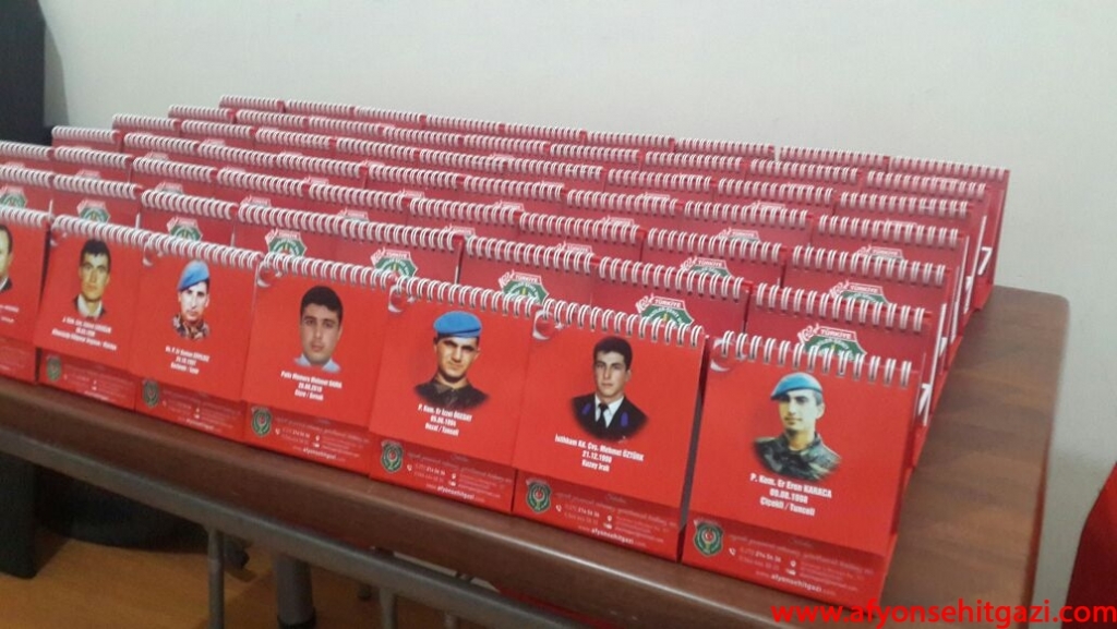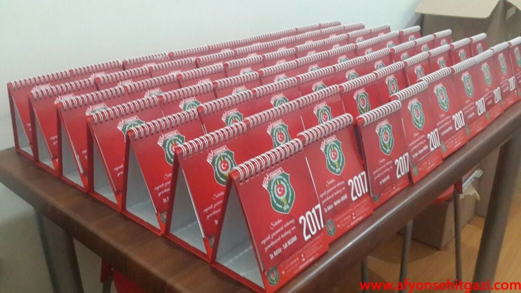 Başkan Kumartaşlı yaptığı açıklamada “Her zaman camiamız için daha ne yapılabilir düşüncesi içersindeyim.Elimden geldiğince Afyonkarahisarda birlik beraberlik çatısı altında şehit ailelerimiz ve gazilerimizi toparlamaya çalışıyorum.Bu yılda bir değişiklik olarak her üyemizin adına üzerinde aziz şehitlerimiz ve gazilerimizin resimlerinin olduğu masa takvimi yapmayı planladık.Şükür dağıtıma başladık herşey Şehit ailelerimiz ve Gazilerimiz için takvimlerimiz her üyemiz adına 300 adet basıldı ve tüm masrafları tamamen dernek yönetimimiz tarafından karşılandı “dedi.