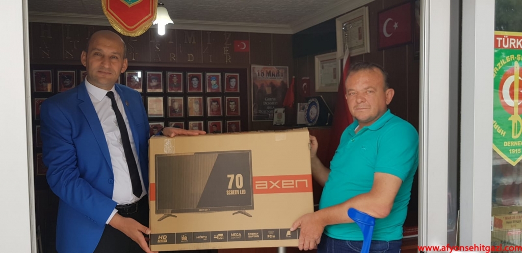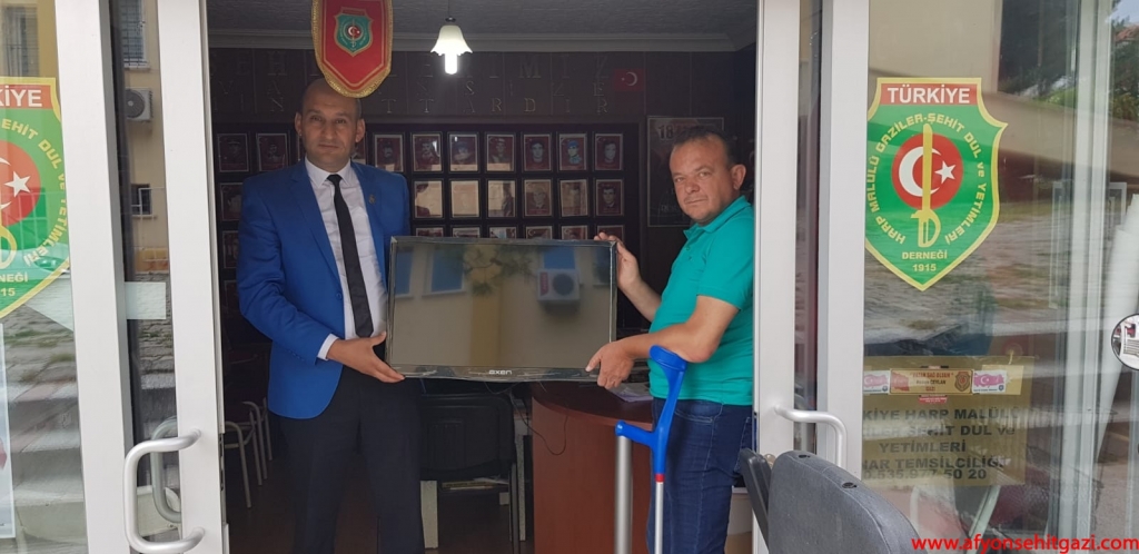 Türkiye Harp Malulü Gaziler, Şehit, Dul ve Yetimleri Derneği Afyonkarahisar Şube Başkanı İsmail Kumartaşlı derneğimiz Dinar Temsilcisi Hasan Ceylan’ı ziyaret etti.Ziyarette bayramlaşıldıktan sonra derneğimiz Dinar Temsilciliğinin ihtiyacı olan televizyonu başkan Kumartaşlı Ceylan’a teslim etti.
