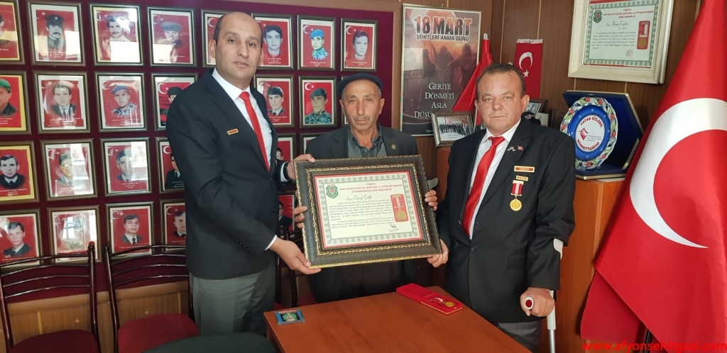 Türkiye Harp Malulü Gaziler, Şehit, Dul ve Yetimleri Derneği Afyonkarahisar Şube Başkanı İsmail Kumartaşlı derneğimiz Dinar Temsilcisi Hasan Ceylan’ı ziyaret etti.Ziyarette şehit ailelerimiz ve gazilerimiz ile görüşüldükten sonra derneğimiz Dinar Temsilcisi Hasan Ceylan ile Şehit aielerimiz ve gazilerimize madalyaları teslim etti.