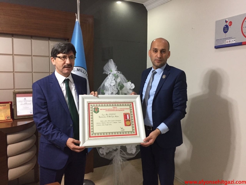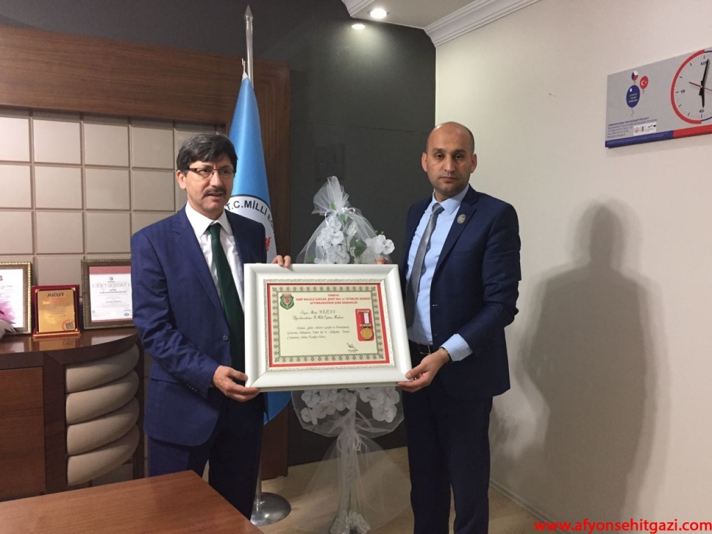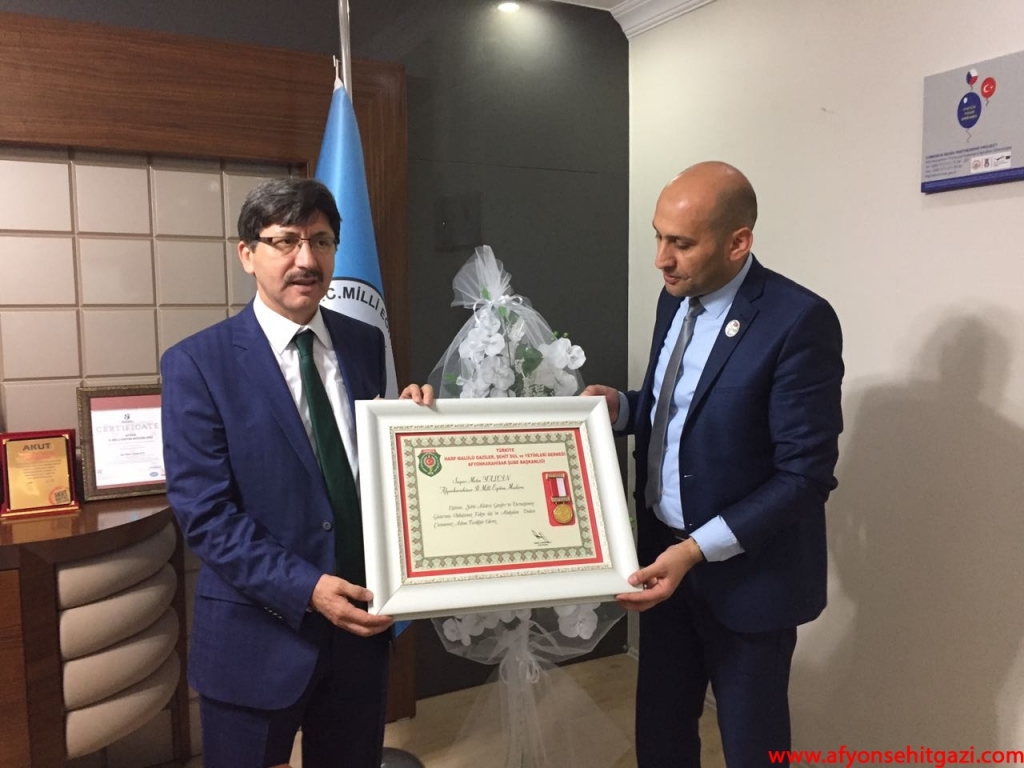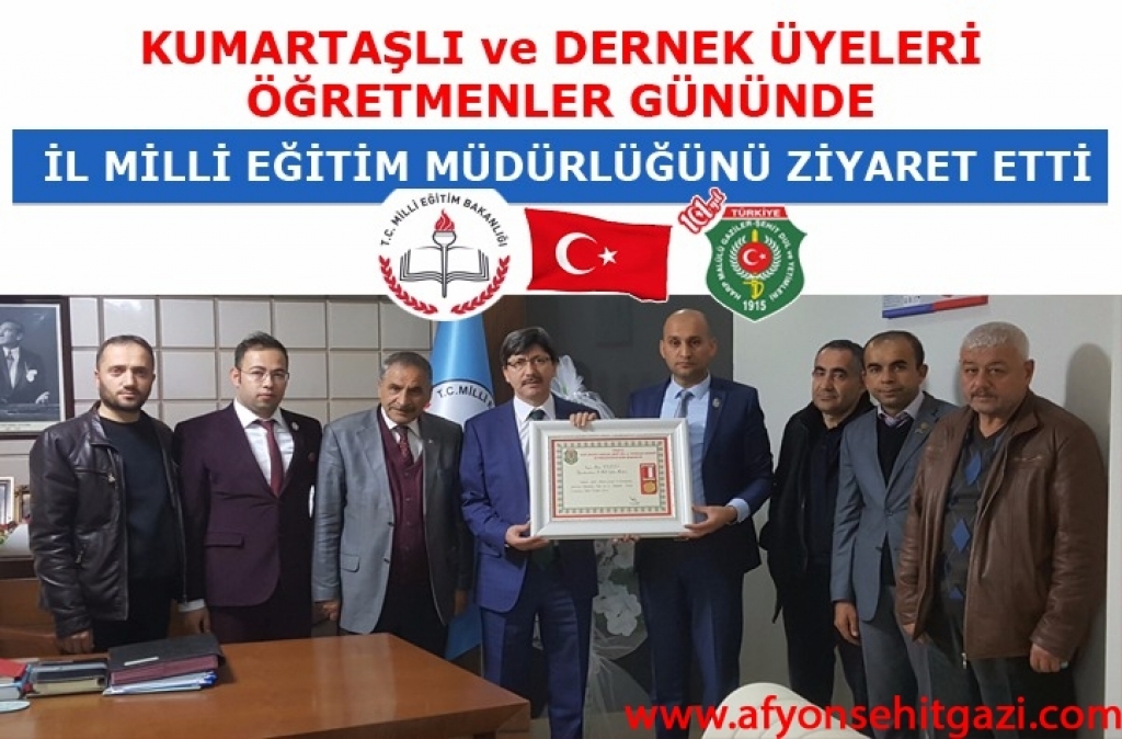 Türkiye Harp Malulü Gaziler Şehit Dul ve Yetimleri Derneği Afyonkarahisar Şube Başkanı İsmail Kumartaşlı dernek yönetim kurulu üyeleri ile İl Milli Eğitim Müdürü Metin Yalçın’a öğretmenler günü münasebetiyle ziyarette bulundu.