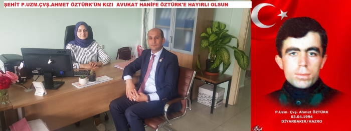 Türkiye Harp Malulü Gaziler, Şehit, Dul ve Yetimler Derneği Afyonkarahisar Şube Başkanı Gazi İsmail Kumartaşlı 03-04-1994 tarihinde Diyarbakır / Hazro kırsalında BTÖ Mensubu Teröristler ile girdiği silahlı çatışma sonucu Şehit olan Şehit P.Uzm.Çvş.Ahmet Öztürk’ün Afyonkarahisar İl Milli Eğitim Müdürlüğü’ne Avukat olarak başlayan kızı Hanife Öztürk’ü iş yerinde ziyaret etti.
