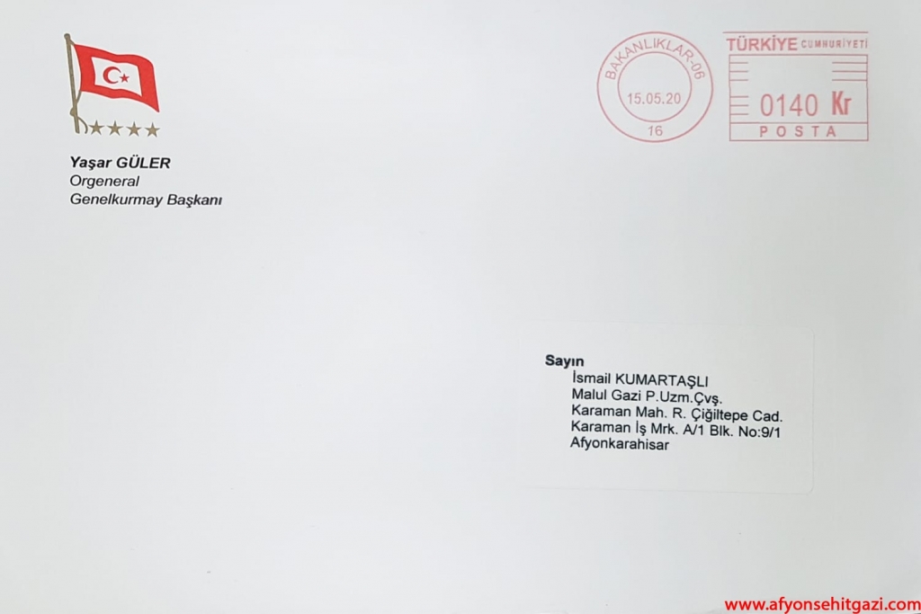 BAŞKAN KUMARTAŞLI’YA GENELKURMAY BAŞKANIMIZ ORGENERAL YAŞAR GÜLER’DEN TEBRİK