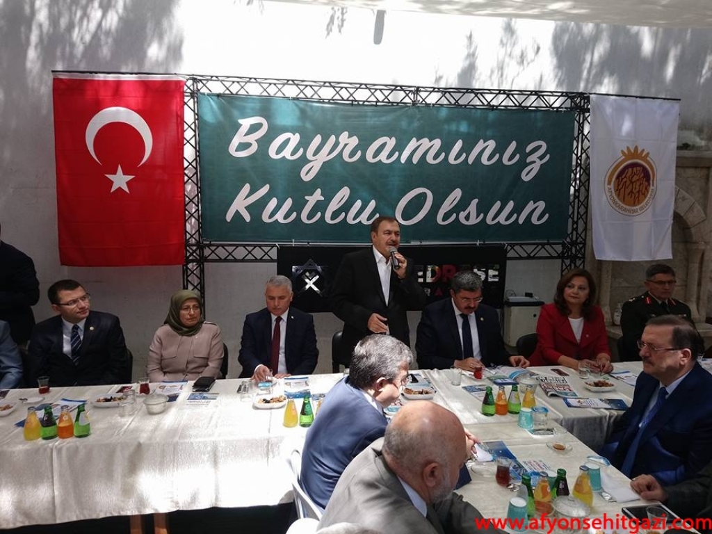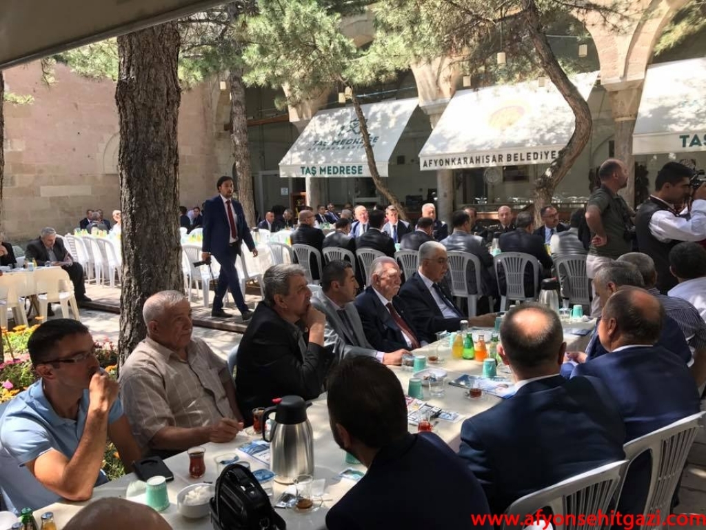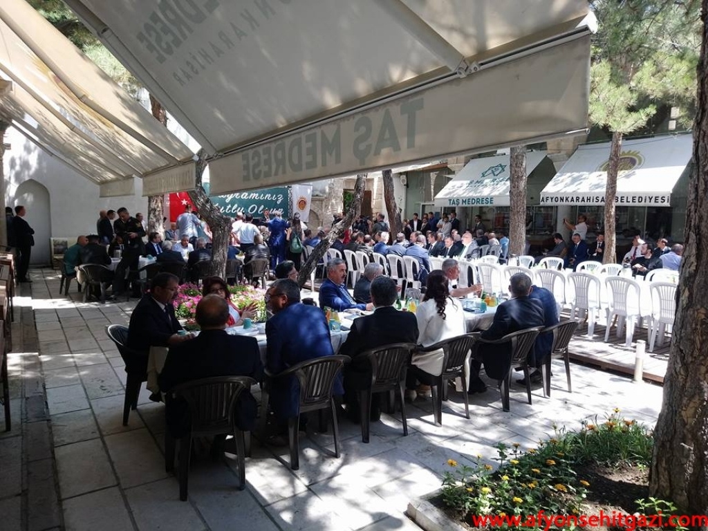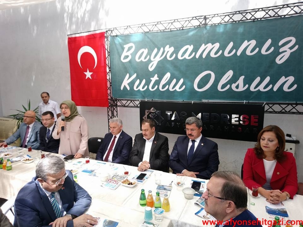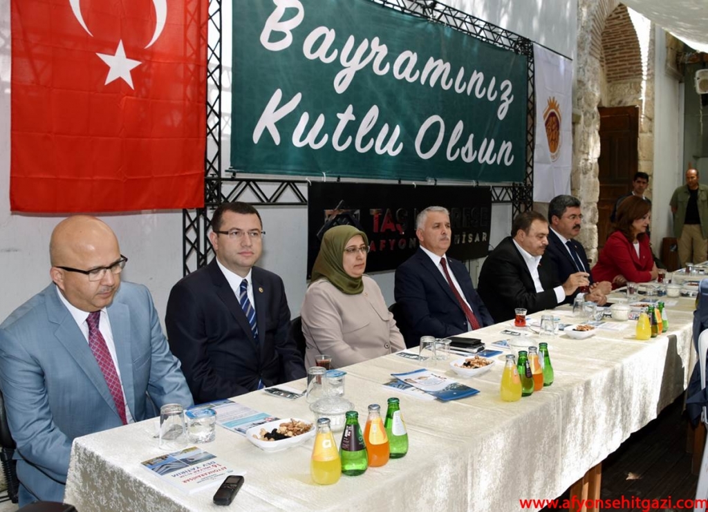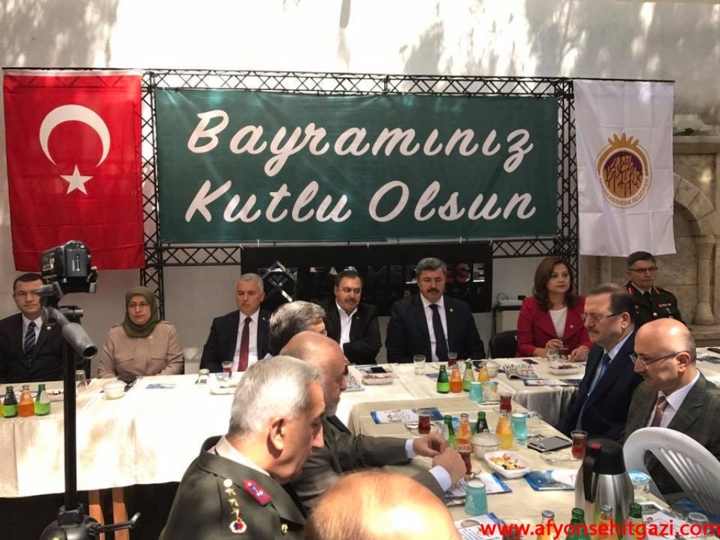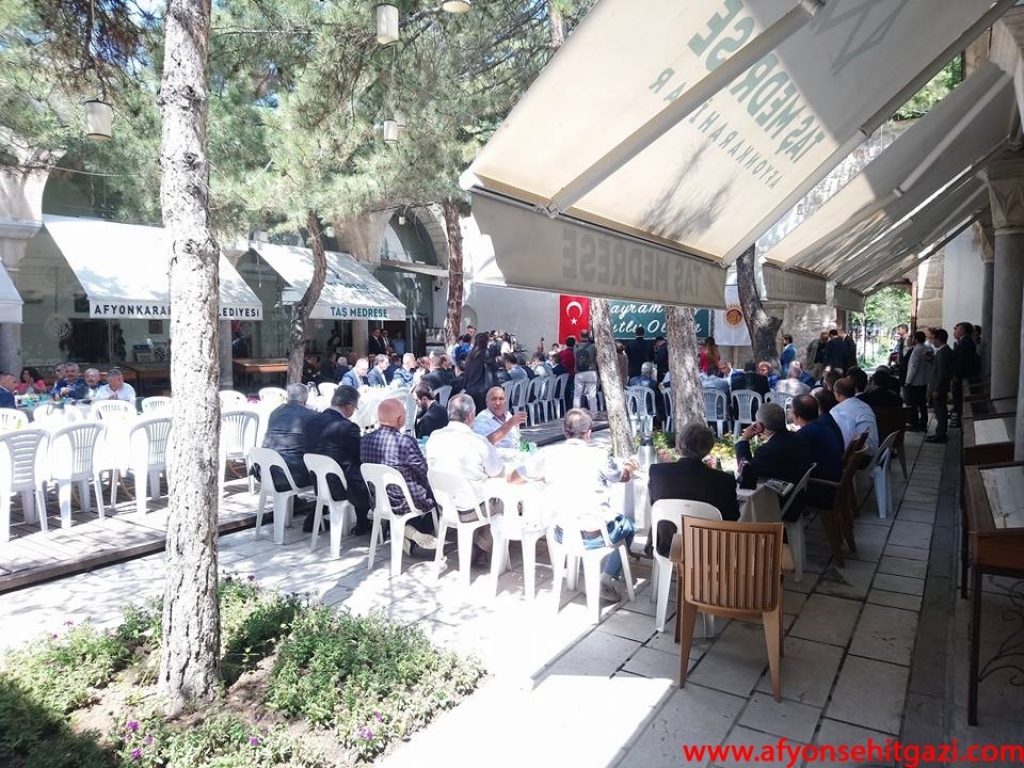 Ramazan Bayramının ikinci günü Taş Medrese’de yapılan bayramlaşma programına, Orman ve Su İşleri Bakanımız Sayın Prof. Dr. Veysel Eroğlu ve Valimiz Aziz Yıldırım’ın yanı sıra Milletvekillerimiz Ali Özkaya, Hatice Dudu Özkal, Burcu Köksal ve Mehmet Parsak, İkmal ve Garnizon Komutanı Tuğg. Şahin Kılıçaslan, Belediye Başkanı Burhanettin Çoban, AKÜ Rektörü Prof. Dr. Mustafa Solak, Baro Başkanı Av. Turgay Şahin, İl Genel Meclisi Başkanı Salih Sel, Türkiye Harp Malülü Gaziler Şehit Dul ve Yetimleri Derneği Afyonkarahisar Şube Başkanı İsmail Kumartaşlı,Şehit Aileleri,Orman ve Su İşleri Bakanlığı üst düzey yöneticileri, İl Müdürleri, sivil toplum örgütü temsilcileri, siyasi partilerin il başkanları ve temsilcileri katıldı.