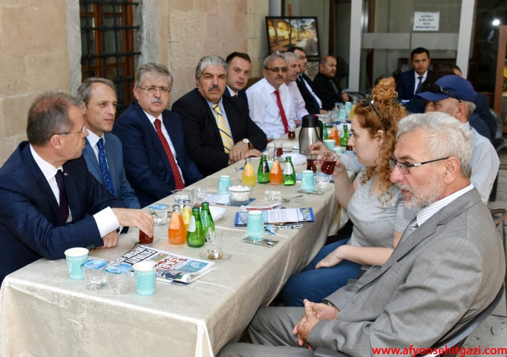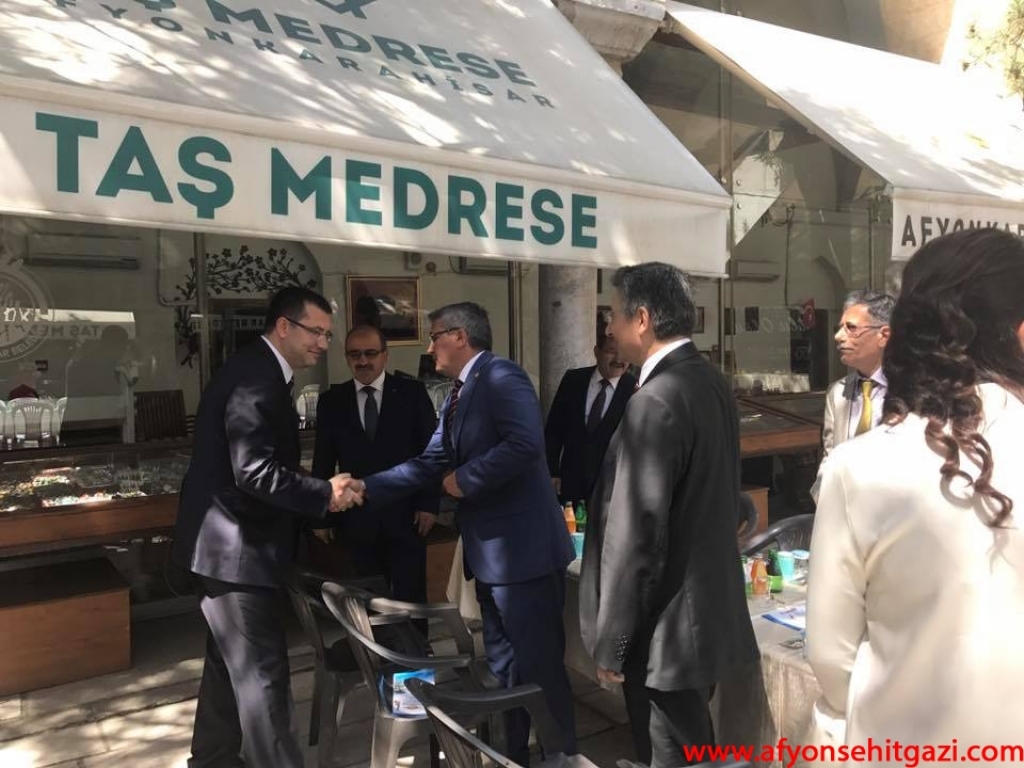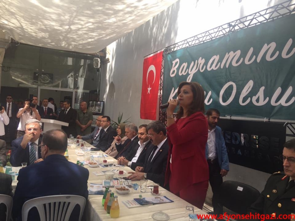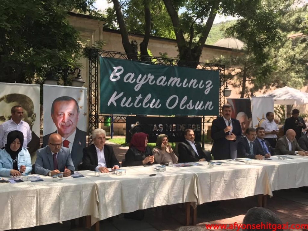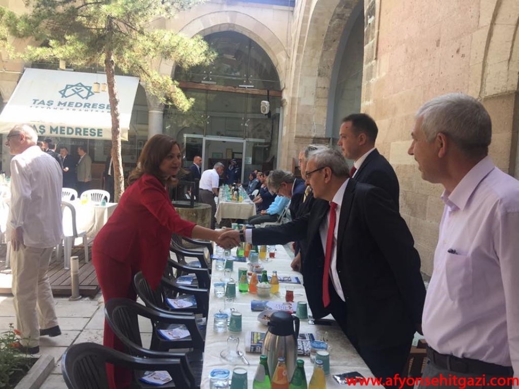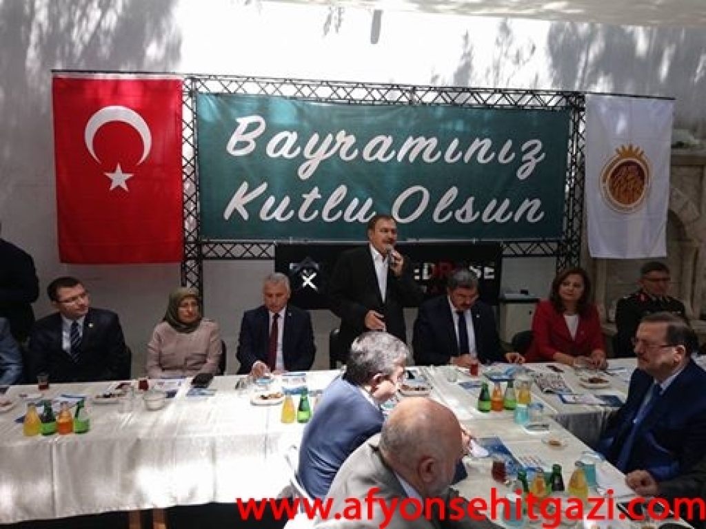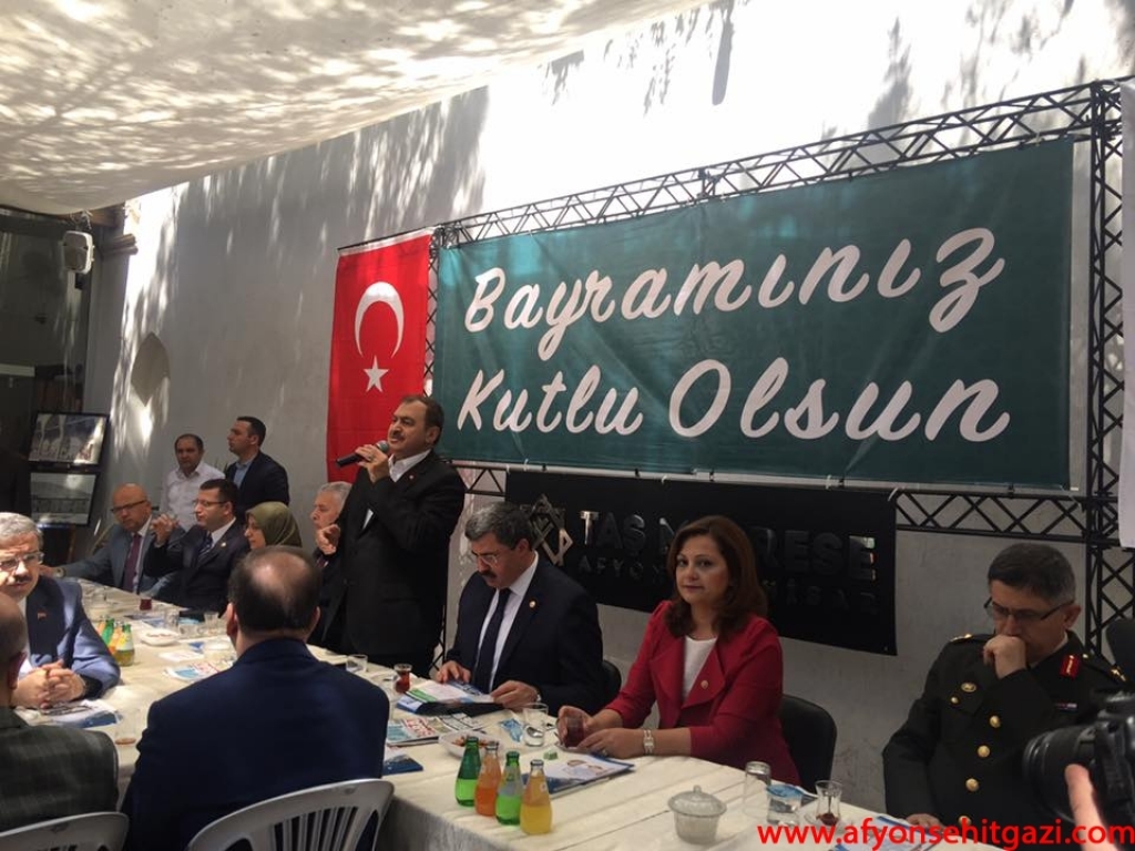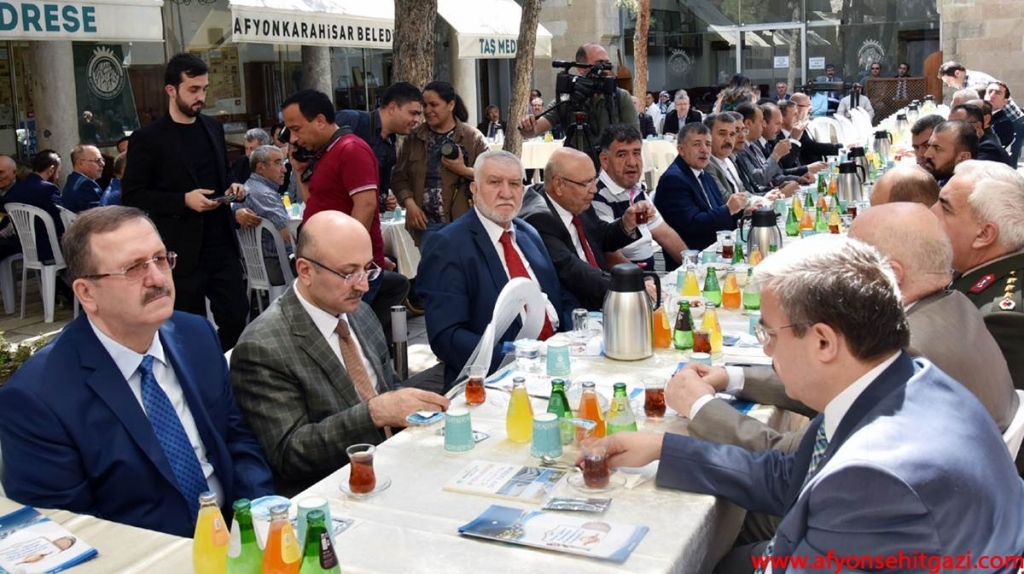 Ramazan Bayramının ikinci günü Taş Medrese’de yapılan bayramlaşma programına, Orman ve Su İşleri Bakanımız Sayın Prof. Dr. Veysel Eroğlu ve Valimiz Aziz Yıldırım’ın yanı sıra Milletvekillerimiz Ali Özkaya, Hatice Dudu Özkal, Burcu Köksal ve Mehmet Parsak, İkmal ve Garnizon Komutanı Tuğg. Şahin Kılıçaslan, Belediye Başkanı Burhanettin Çoban, AKÜ Rektörü Prof. Dr. Mustafa Solak, Baro Başkanı Av. Turgay Şahin, İl Genel Meclisi Başkanı Salih Sel, Türkiye Harp Malülü Gaziler Şehit Dul ve Yetimleri Derneği Afyonkarahisar Şube Başkanı İsmail Kumartaşlı,Şehit Aileleri,Orman ve Su İşleri Bakanlığı üst düzey yöneticileri, İl Müdürleri, sivil toplum örgütü temsilcileri, siyasi partilerin il başkanları ve temsilcileri katıldı.