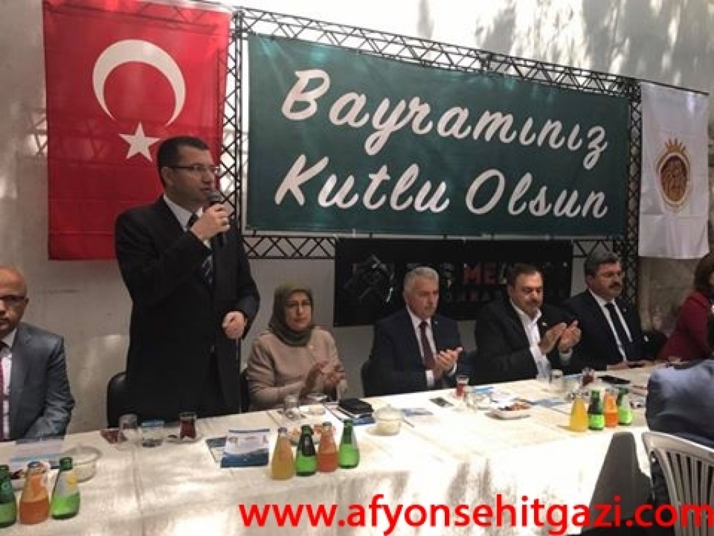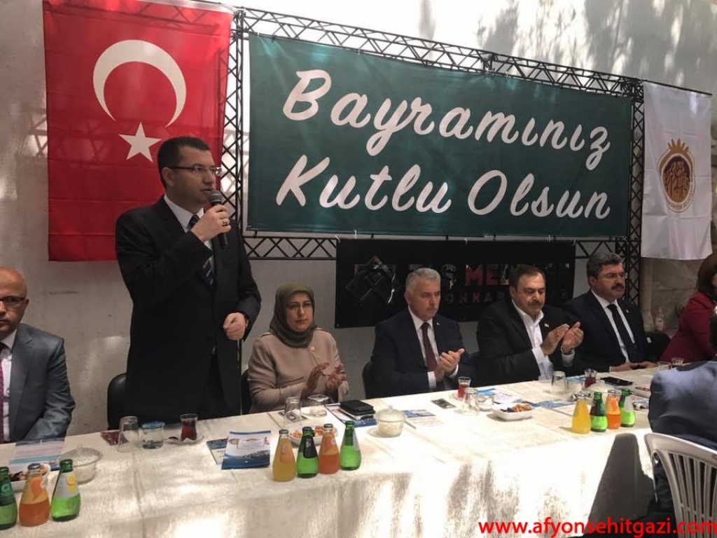 Daha sonra bayramlaşma programa katılan tüm protokol üyelerini selamlayan Orman ve Su İşleri Bakanımız Sayın Prof. Dr. Veysel Eroğlu yaptığı konuşmasında; “Sizlerin Ramazan bayramını canı gönülden tebrik ediyorum. İnşallah Cenab-ı Allah bu bayramların birlik, beraberlik ve kardeşliğimizin daha da pekişmesini sağlamasını diliyorum. 15 Temmuz’da gerçekleşen bir teşebbüs vardı biliyorsunuz, alçak FETÖ darbe girişimi Allah’a şükürler olsun ki Cenab-ı Allah’ın yardımı, tabi milletimizin kahramanlığı ve Cumhurbaşkanımızın direnişi sayesinde bütün herkesin karşı koyması neticesinde engellendi. Bunlar neden oluyor Türkiye’de, çünkü Türkiye özellikle bir kale, bu bakımdan düşmanlar bu kaleyi yıkmak istiyor. Aslında Haçlı Seferleri hala devam ediyor yani başka şekilde devam ediyor. Özellikle bu coğrafyada ayakta kalmanın yegane yolu çok güçlü olmaktan geçiyor. İşte bizler mutlaka bu bayramları da vesile kılarak birlik, beraberlik ve kardeşliğimizi daha da pekiştirmemiz lazım. Türkiye’yi daha da ileriye götürmemiz gerekir. Tek çare budur diye düşünüyorum. Çünkü gönül coğrafyamızda tek kalan kale burasıdır. Bakıyorum bütün dünyayı gezdiğim zaman şunu görüyoruz. Bosna’dan, Endonezya’ya kadar, Gazze’den Libya’ya kadar Katar’dan belki Azerbaycan’a kadar bütün gönül coğrafyasındaki insanlar Türkiye’den çok şey bekliyor. Dolayısıyla üzerimizde çok büyük bir tarihi mesuliyet var ve çok çalışmak zorundayız. Allahın izniyle bu akan kanlar son bulacaktır. Türkiye’mizi bölmek ve parçalamak isteyenlerin bir hesabı varsa Cenab-ı Allah’ında bir hesabı var. Değerli kardeşlerim Valimizi gerçekten çok sevdik ve Afyonkarahisar’da bir yılını doldurdu. Kendisi çalışkan, gayretli ve herkese çok iyi yaklaşan bir Valimizdir. Gitmesini arzu etmedik, ama o bölgede çok ihtiyaç var diye Valimiz için böyle bir durum söz konusu oldu. Ama her yer bizim vatanımızdır. Dolayısı ile kendisini Muş ilinde de ziyaret edeceğim ve birlikte Muş ilimize de büyük yatırımlar yapacağız. Ben Sayın Valimizin şimdiye kadar yaptığı büyük çalışmaları, bilhassa birlik, beraberlik ve kardeşliğin pekişmesi konusunda gösterdiği büyük gayretlerinden dolayı kendisine gönülden teşekkür ediyorum. Yeni vazife yerinde kendisine üstün muvaffakiyetler temenni ediyorum. Allah kendisinden razı olsun, bizler hakkımızı helal ediyoruz Valimizin de hakkını helal etmesini istiyorum. Bu bir vedalaşma değil, Valimiz bizim fahri hemşerimiz bu bakımdan ben kendisine gönülden teşekkür ediyorum. Sevgili kardeşlerim ben tekrar hepinizin mübarek ramazan bayramınızı gönülden tebrik ediyorum. ” dedi.