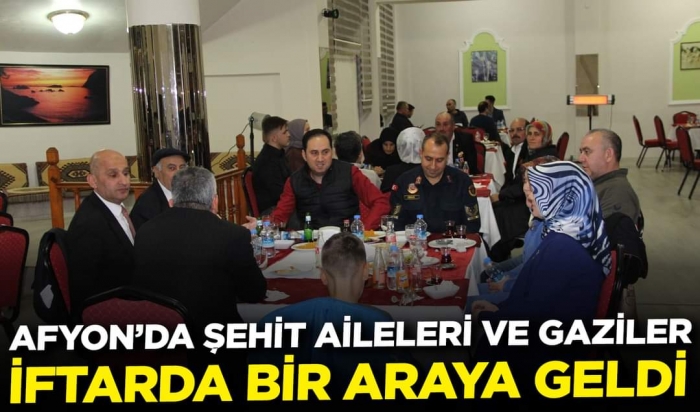 Bolvadin Kaymakamı Taner Bolat, Bolvadin Belediye Başkanı Fatih Kayacan, Afyonkarahisar Gazi Şehit Dul ve Yetimleri Derneği Başkanı İsmail Kumartaşlı, kurum amirleri, Şehit Aileleri, Gaziler ve Gazi Aileleri onuruna verilen iftar programına katıldı. Şehit ve Gazi Ailelerinin masalarını tek tek ziyaret eden Kaymakam Bolat, onlarla sohbet edip Ramazanlarını kutladı. Program günün anısına çekinilen fotoğrafların ardından son buldu.