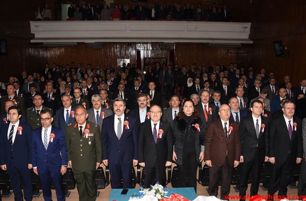 Vali Mustafa Tutulmaz’ın yanı sıra, Milletvekilleri Ali Özkaya ve Burcu Köksal, İkmal ve Garnizon Komutanı Tuğg. Özdemir Şan, Belediye Başkanı Burhanettin Çoban, Cumhuriyet Başsavcısı Mehmet Özel ve diğer protokol üyelerinin yanı sıra il müdürleri, şehit yakınları ve gazilerimizin katıldığı proğram saygı duruşu ve İstiklal Marşının okunmasıyla başladı. Proğramda daha sonra Devlet büyüklerinden gelen mesajların okunmasının ardından Osmangazi Anadolu Lisesi Müdürü Selami Saltık günün anlam ve önemini belirten bir konuşma yaptı.