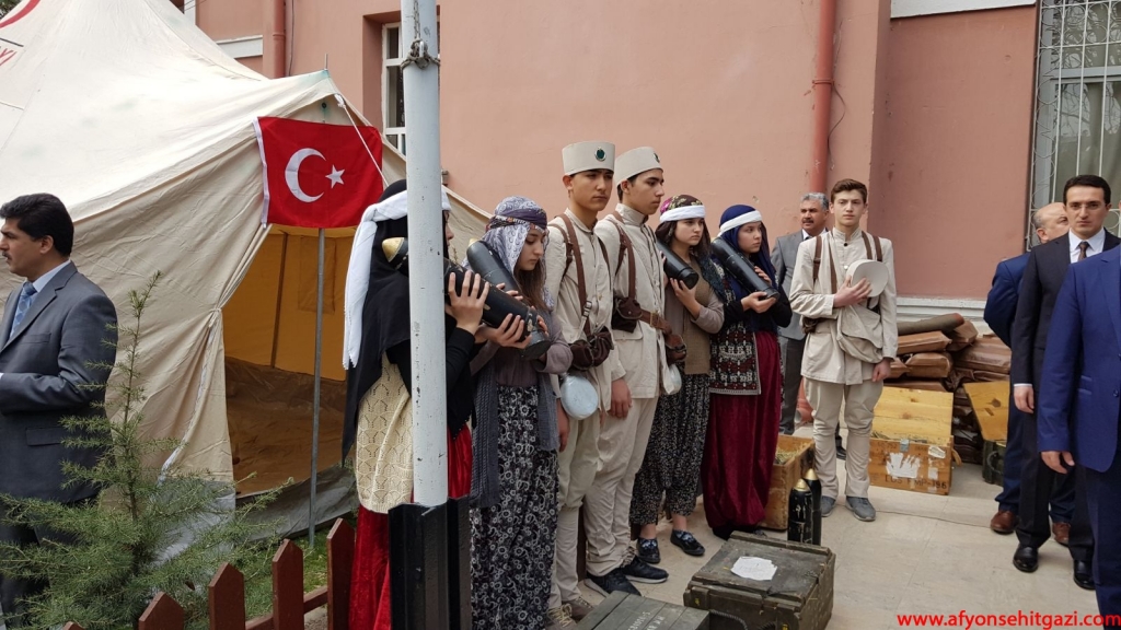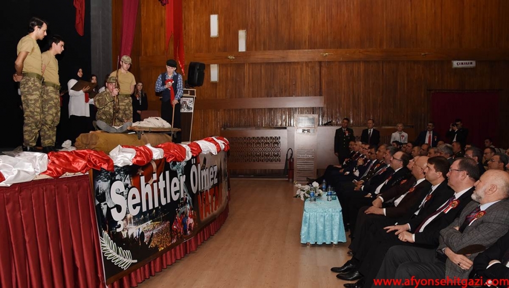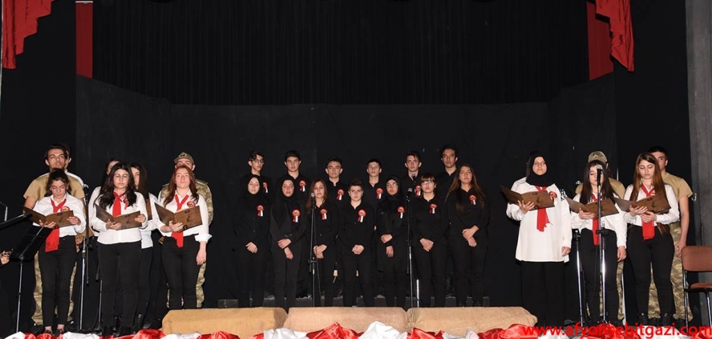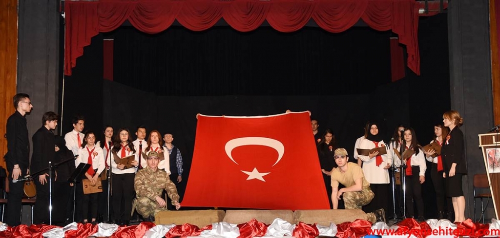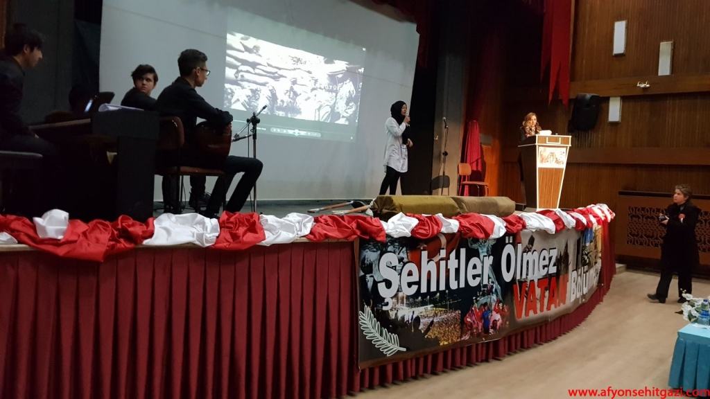 “Bir Yolcuya” isimli şiirinin okul öğrencilerinden Sahra Çöygün tarafından okunmasının ardından Garnizon Komutanlığında görevli İkm. Bnb. Özgür Ceridhantarafından Çanakkale Zaferinin askeri yönü anlatıldı. Yine okul öğrencilerinden Gamze Nur Demir tarafından okunan ‘Ben Bir Şehit’im isimli şiirin salonda duygusal anların yaşanmasına sebep oldu.