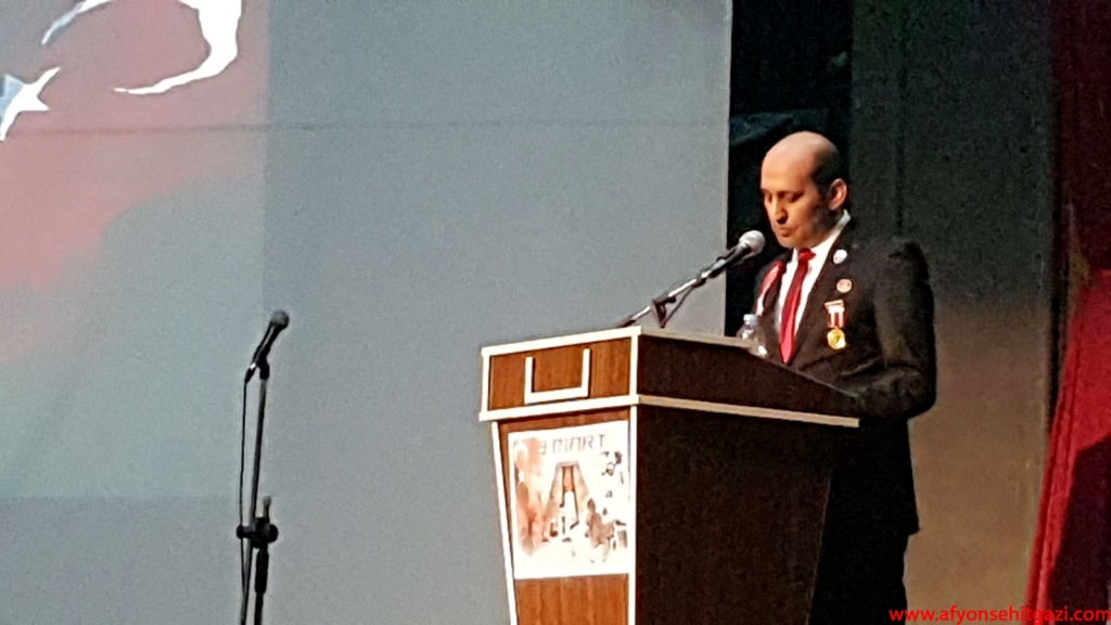 Daha sonra Garnizon Komutanlığında vatani görevini yapan Mehmetçiklerimizden Mehmet Yaman’ın “Çanakkale” şiirini okumasının ardından Türkiye Harp Malulu Gaziler, Şehit, Dul ve Yetimler Derneği Afyonkarahisar Şube Başkanı günün anlamı ile ilgili bir konuşma yaptı.