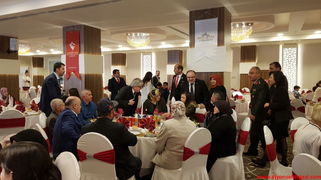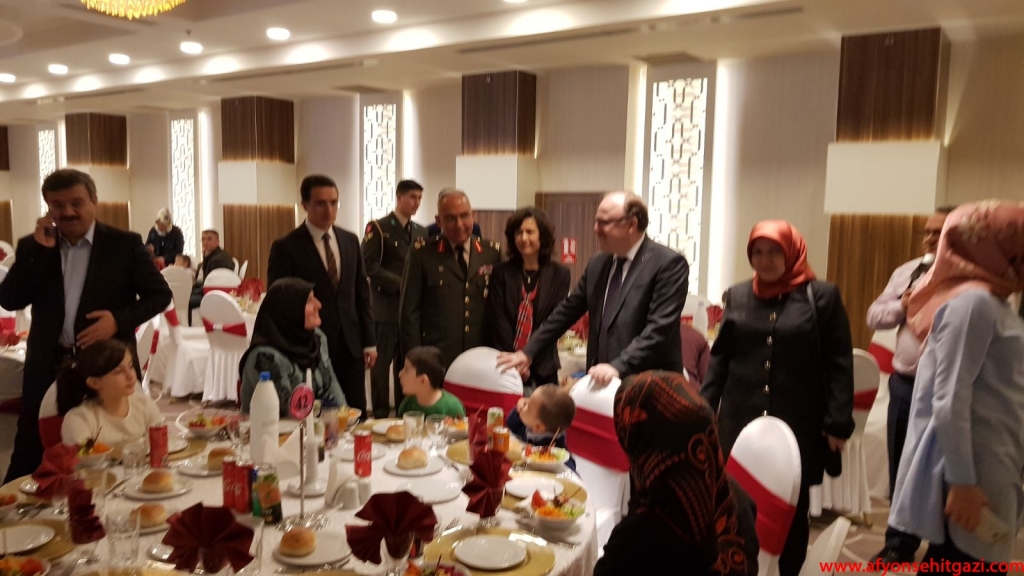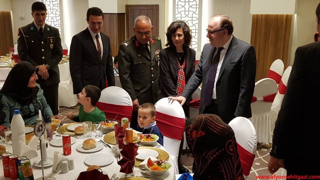 Türkiye Harp Malulü Gaziler Şehit Dul ve Yetimleri Derneğini ziyaret sonrasında Vali Mustafa Tutulmaz ve Eşi Fatma Tutulmaz, Milletvekili Hatice Dudu Özkal, İkmal ve Garnizon Komutanı Tuğg. Özdemir Şan, Belediye Başkanı Burhanettin Çoban, Cumhuriyet Başsavcısı Mehmet Özel, sivil toplum örgütleri temsilcileri, Şehit yakınları ve gazilerimizin katıldığı yemekte biraraya geldiler. Yemek öncesinde Vali Mustafa Tutulmaz ve Eşi Fatma Tutulmaz şehit yakınları ve gazilerimizin masalarını teker teker dolaşarak hoş geldiniz diyerek herhangi bir taleplerinin olup olmadığını sordu. Vali Mustafa Tutulmaz ve Eşi Fatma Tutulmaz ve diğer protokol üyeleri Şehit Aileleri ile birlikte hem yemek yediler, hem de sohbet ederek Şehit Ailelerinin acılarını paylaştılar.