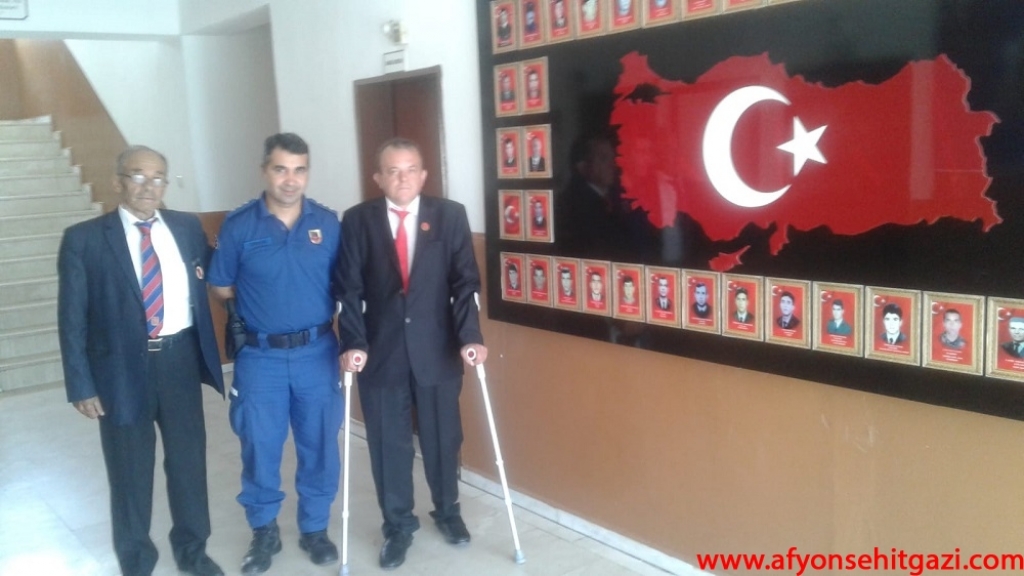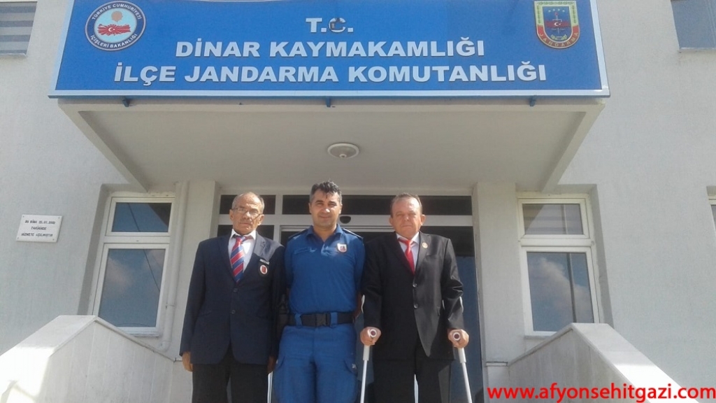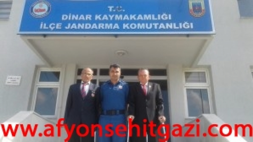 Türkiye Harp Malūlū Gaziler Şehit Dul ve Yetimleri Derneği Dinar Temsilcisi Hasan Ceylan ve Muharip Gaziler Derneği Dinar Temsilcisi Cengiz kartal Dinar ilçe jandarma Komutanı Yüzbaşı Mehmet Çırak’a hoş geldin ziyareti gerçekleştirdi.