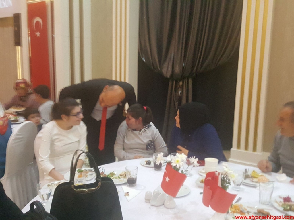 Program da Türkiye Harp Malulü Gaziler Şehit Dul ve Yetimleri Derneği Afyonkarahisar Şube Başkanı Malul Gazi İsmail Kumartaşlı tüm Şehit Aileleri ve Gazileri tek tek masalarında ziyaret ederek hal hatırlarını sordu.