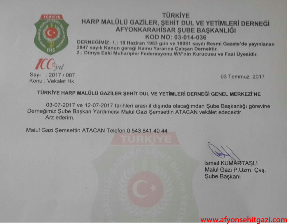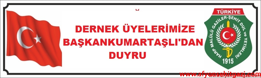 TÜRKİYE HARP MALÜLÜ GAZİLER ŞEHİT DUL VE YETİMLERİ DERNEĞİ AFYONKARAHİSAR ŞUBE BAŞKANI İSMAİL KUMARTAŞLI BİR DUYRU YAYINLADI.