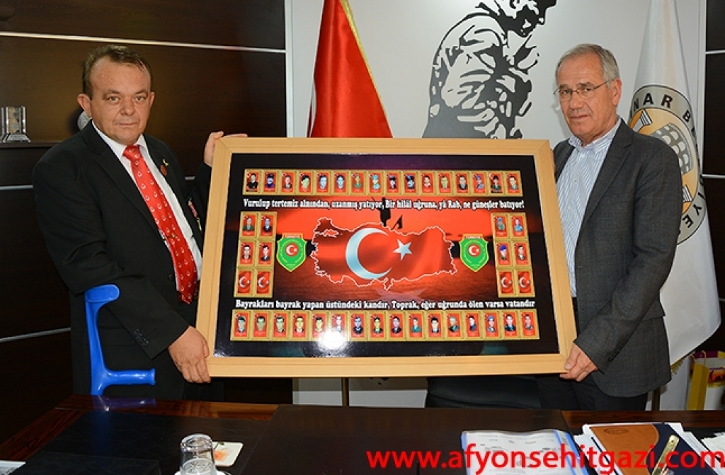 Türkiye Harp Malulü Gaziler Dul ve Yetimleri Derneği Afyonkarahisar Dinar Temsilcisi Hasan Ceylan, şehit yakınları ile birlikte Dinar Belediye Başkanı Saffet Acar’ı ziyaret etti.