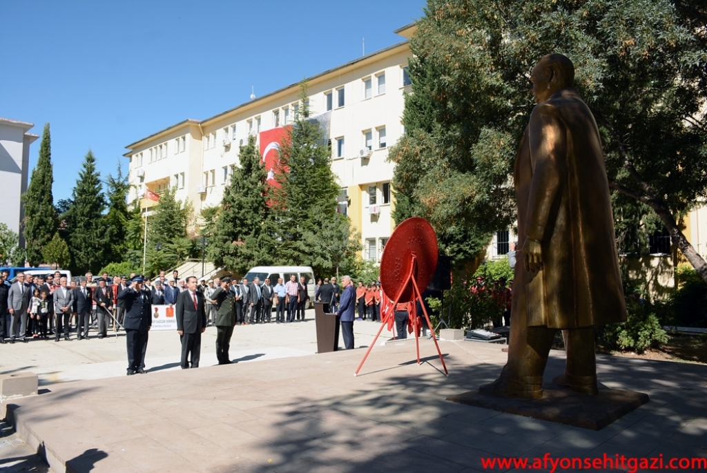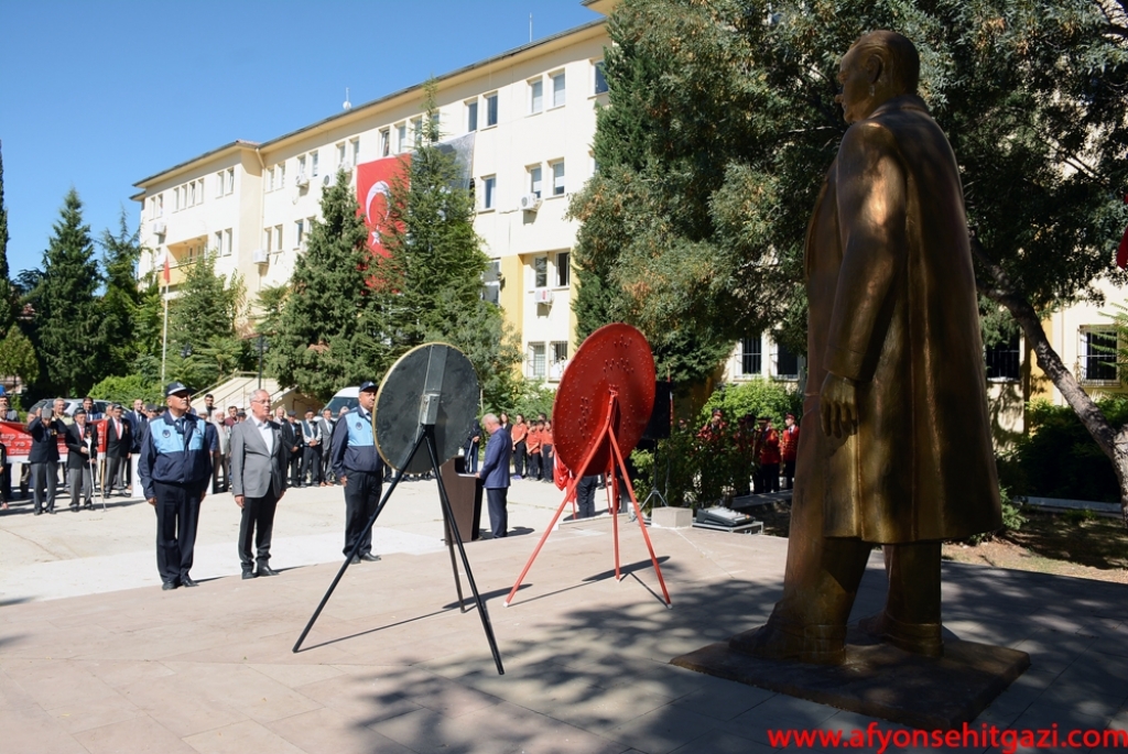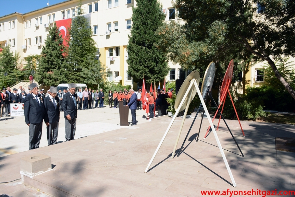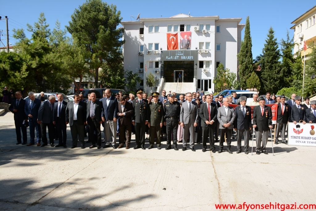 Hükümet konağı önünde İlçe Kaymakamlığı, Belediye Başkanlığı ve Türkiye Muharip Gaziler Derneği Dinar Temsilciliğinin çelenklerinin Atatürk Anıtına konulması ile Ulu Önder Mustafa Kemal Atatürk, Kahraman Gazilerimiz ve Aziz Şehitlerimizin manevi huzurunda saygı duruşunda bulunuldu ve İstiklal Marşımız okundu. Günün anlam ve önemini belirten konuşma gerçekleştiren Jandarma Uzman Çavuş Murat Albayın şunları söyledi, “Cumhuriyetimiz, Türkiye Büyük Millet Meclisi tarafından Gazi unvanıyla onurlandırılan Mustafa Kemal Atatürk tarafından kuruldu. Bu bakımdan, şehitlerimizin ve gazilerimizin emaneti olan bu mukaddes toprakları muhafaza etmek, ay yıldızlı bayrağımızı bu topraklar üzerinde ilelebet özgürce dalgalandırmak, medeniyetimizi daha da ileri seviyelere yükseltmek, şehit yakınlarına ve gazilerimize sahip çıkmak da hepimiz için milli bir vazife olmalıdır. Annelerimiz, ninelerimiz bizleri daima güzel olan şehit ve gazilik şarkı ve ninnileriyle büyütmüşlerdir, öz çocuklarını bu ülke uğruna canlarını, kanlarını vermek için uğurlamışlardır. Bu ülke için kanlarını döken gazilerimizi bir kez daha anıyor ve onların ne kadar cesur ve yürekli olduklarını tekrar tekrar vurguluyoruz. Bu vatanın ve bayrağın korunmasında en önemli rolü alan kişiler, şüphesiz şehit ve gazilerimiz olmuşlardır. Bu düşüncelerle, Cumhuriyetimizin kurucusu Mustafa Kemal Atatürk’e mareşal rütbesi ve gazi unvanı verilişinin yıldönümünü ve Gaziler Günü’nü kutluyor, tüm gazilerimize şükranlarımı ve minnet duygularımı sunuyorum” dedi.