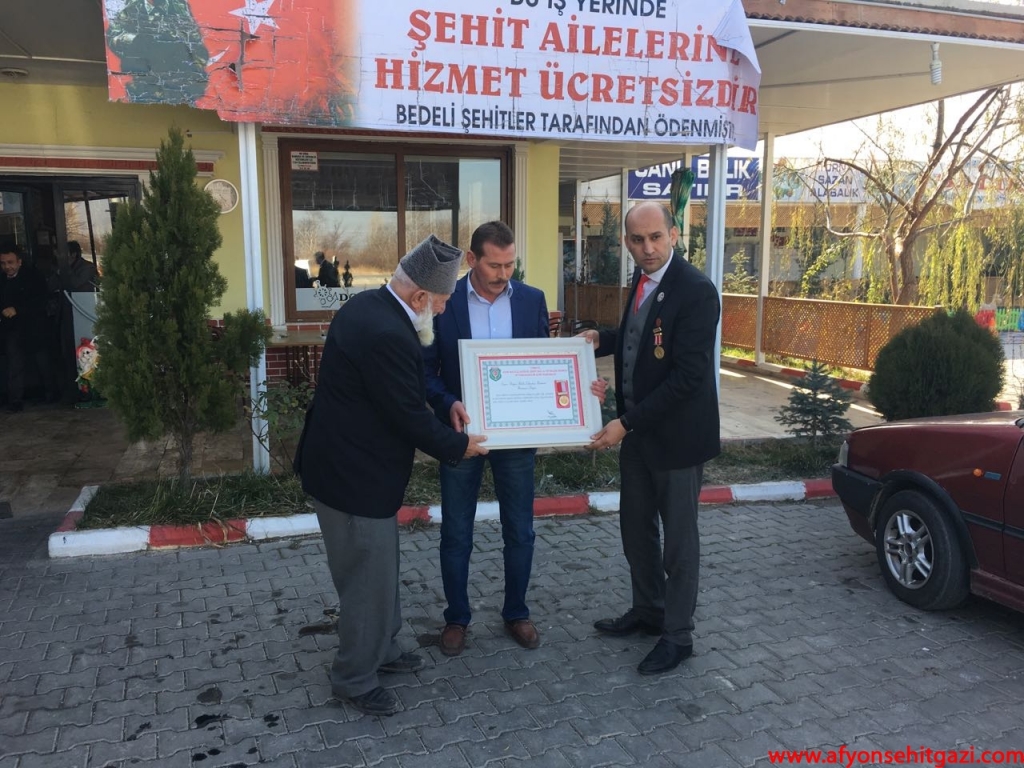 Türkiye Harp Malülü Gaziler Şehit Dul ve Yetimleri Derneği Afyonkarahisar Şube Başkanı İşletme sahibi Ramazan DOĞAN’ı ziyaret ederek bu hassas davranışından dolayı teşekkür ederek plaket takdim etti.