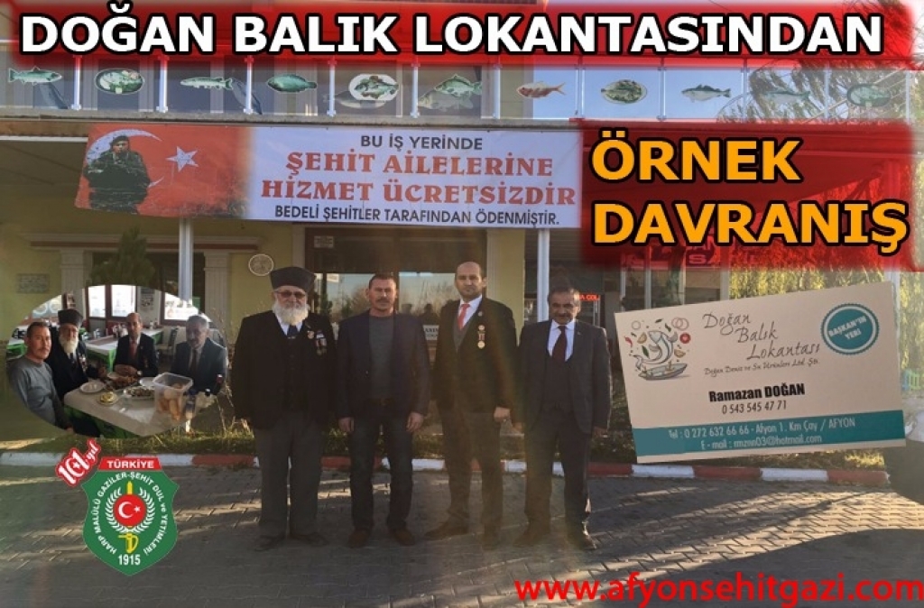 İlimiz Çay İlçesi'nde bir balık lokantası şehit ailelerine ücretsiz hizmet uygulaması başlattı.