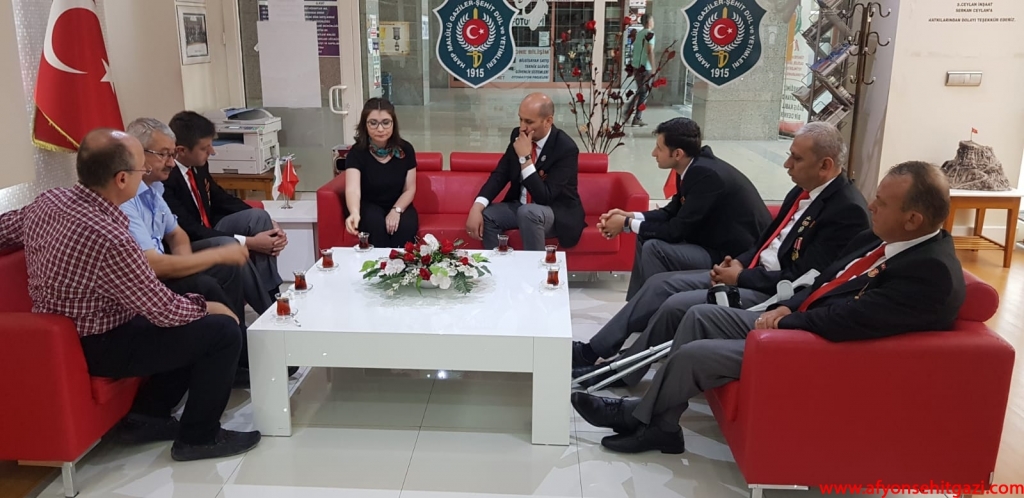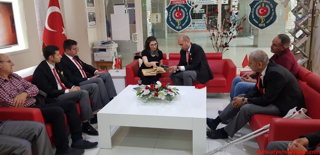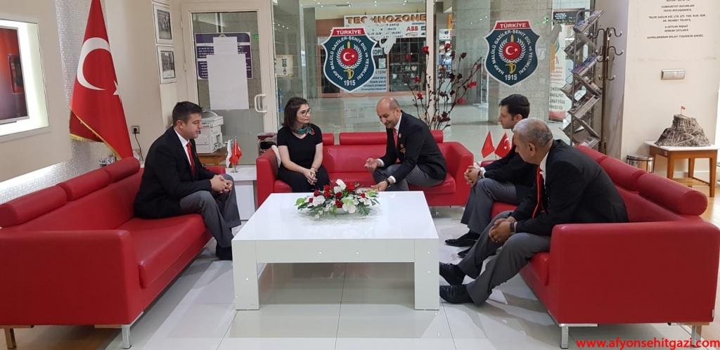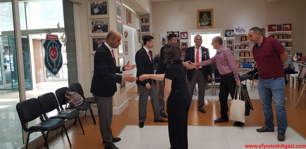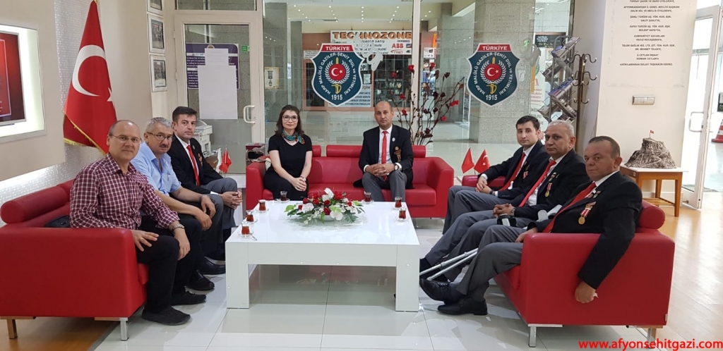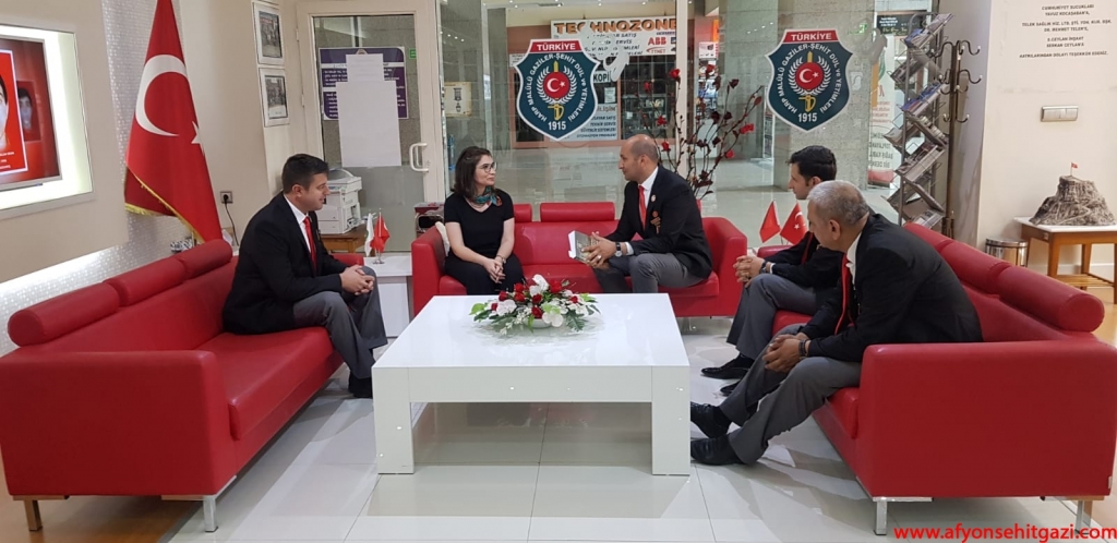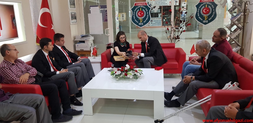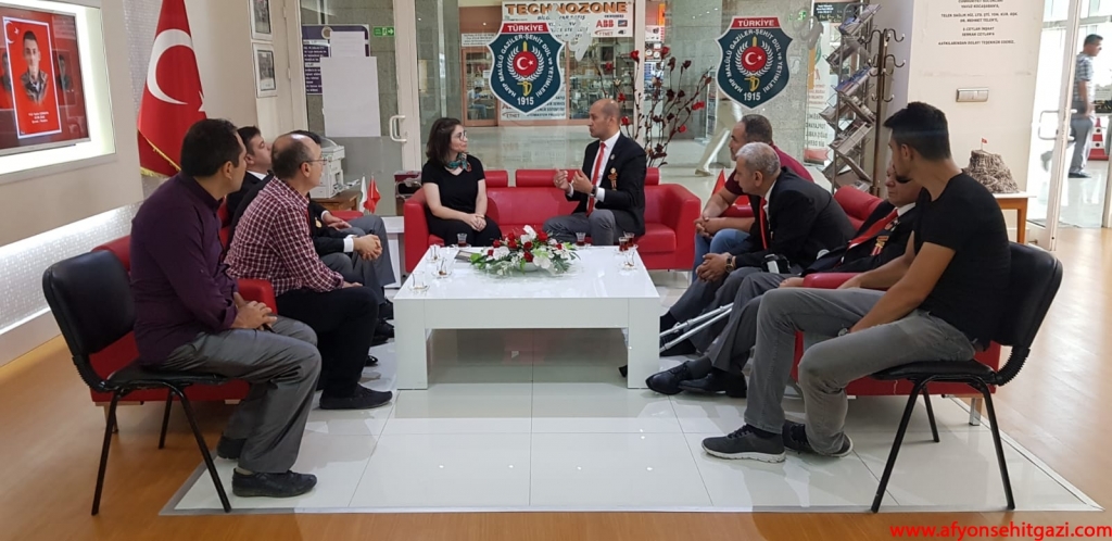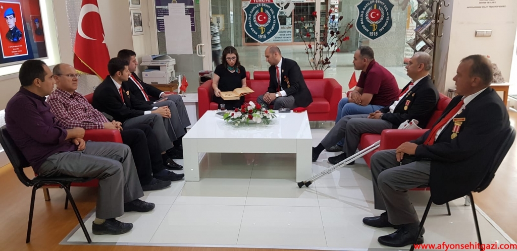 Türkiyede ilk defa Malül Gaziler Hakkında Akademik bir çalışma yapan Afyon Kocatepe Üniversitesi Öğretim Görevlisi Dr.Feyza Kurnaz Şahin Türkiye Harp Malulü Gaziler Şehit Dul ve Yetimleri Derneği Afyonkarahisar Şube Başkanı İsmail Kumartaşlı yı ziyaret etti.