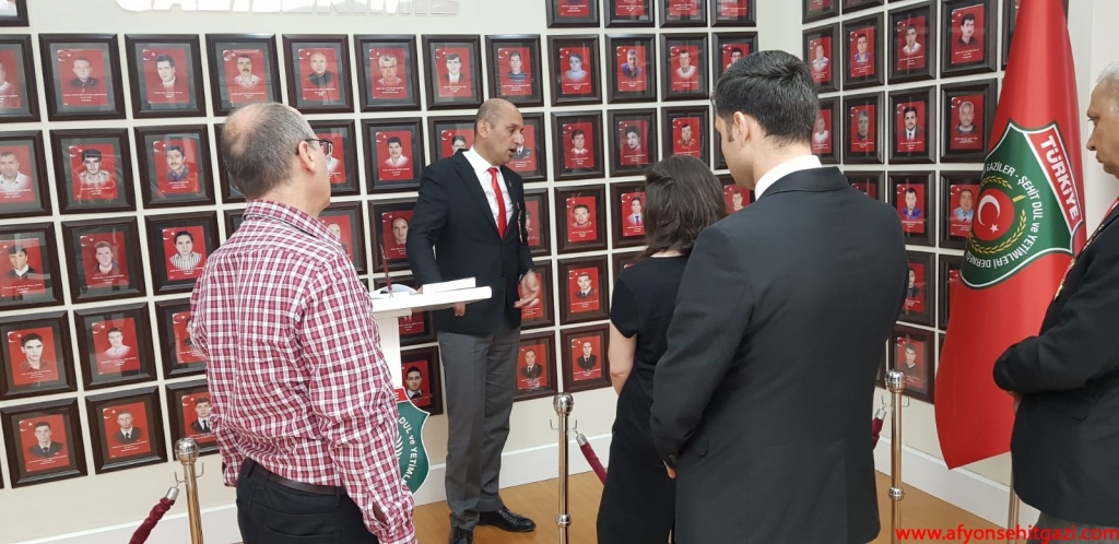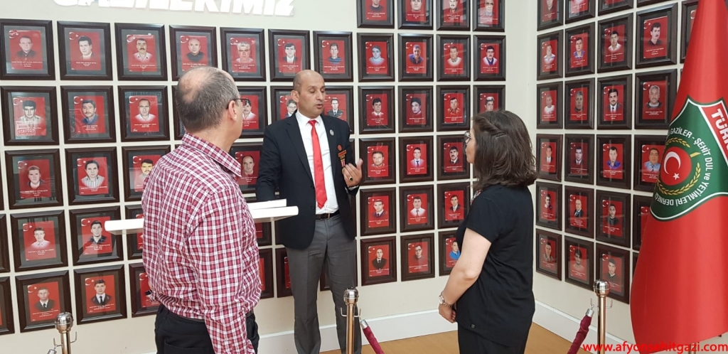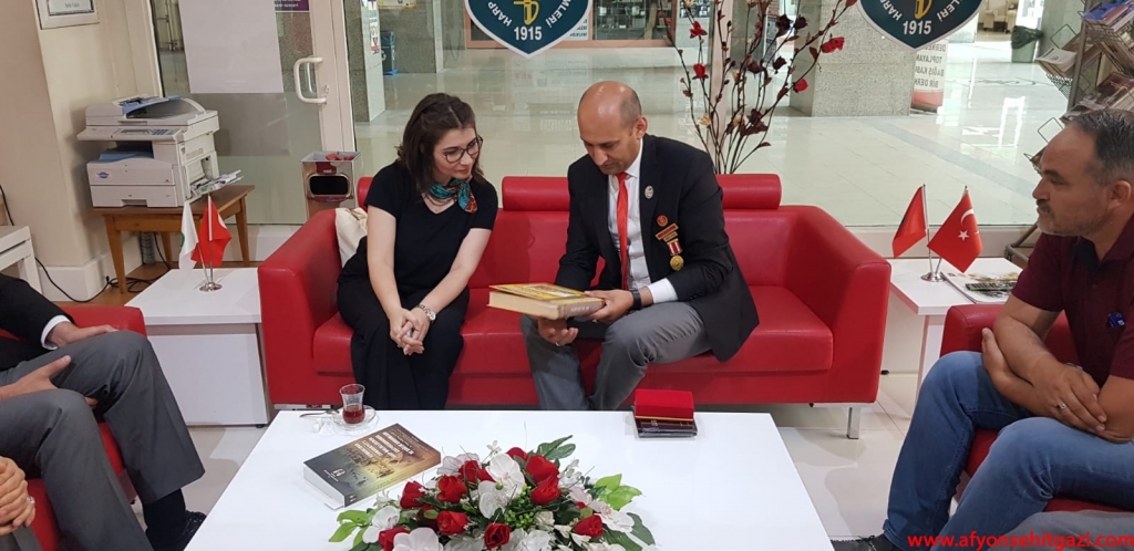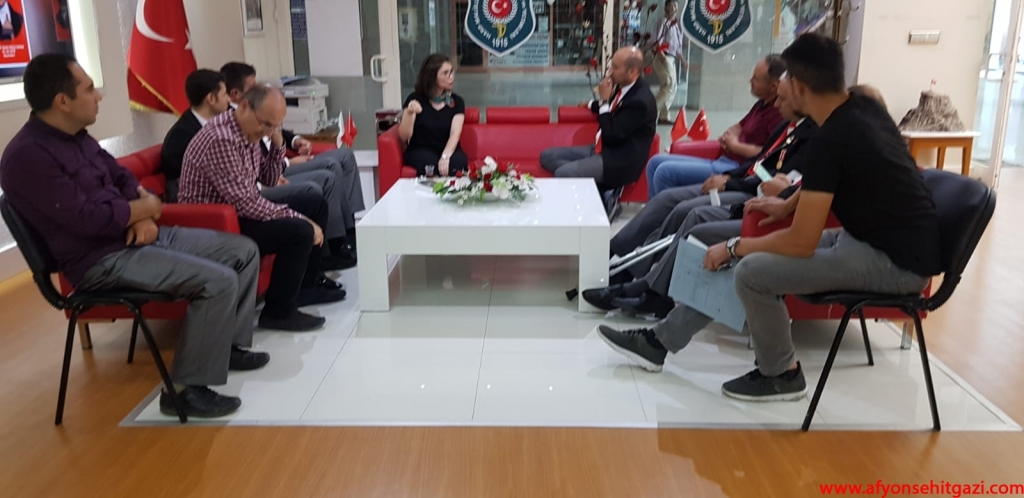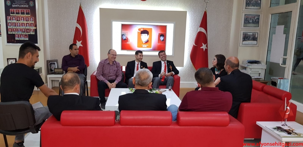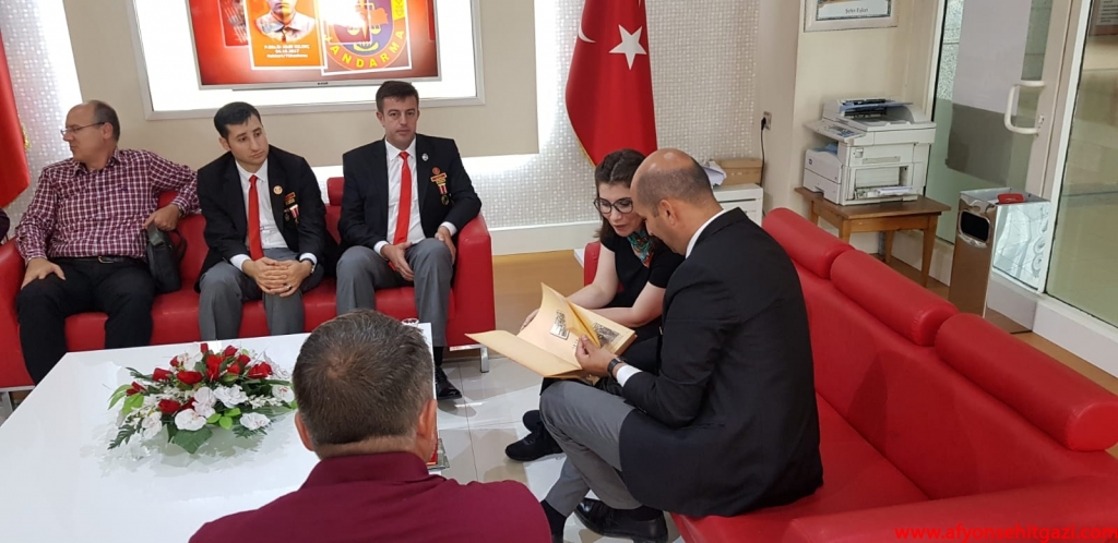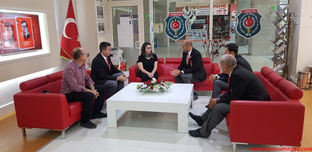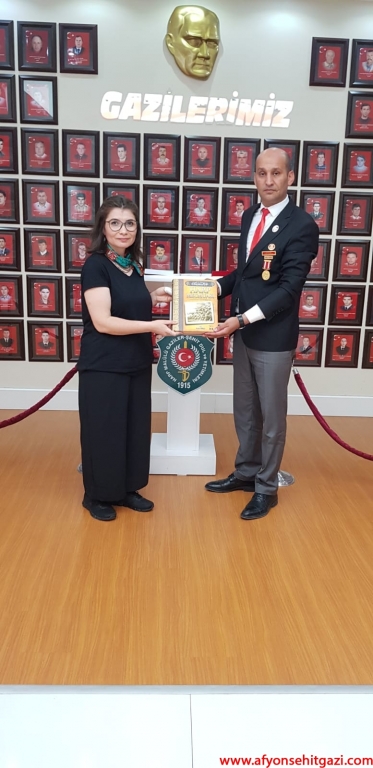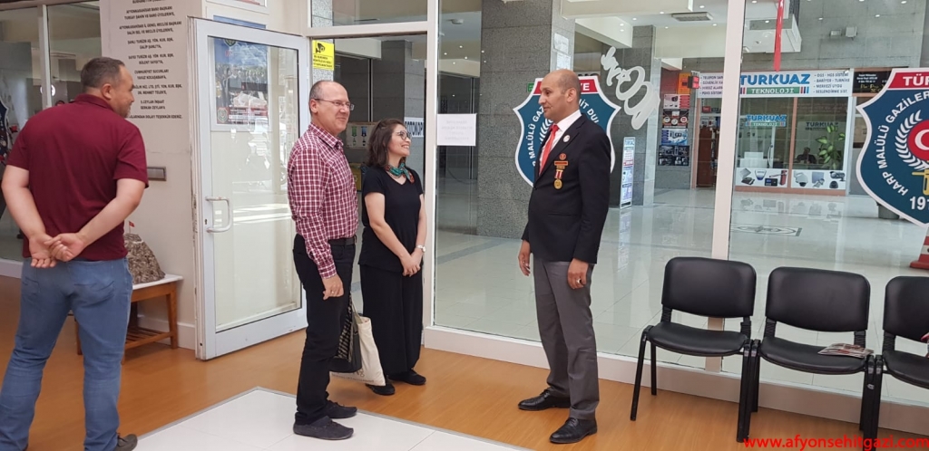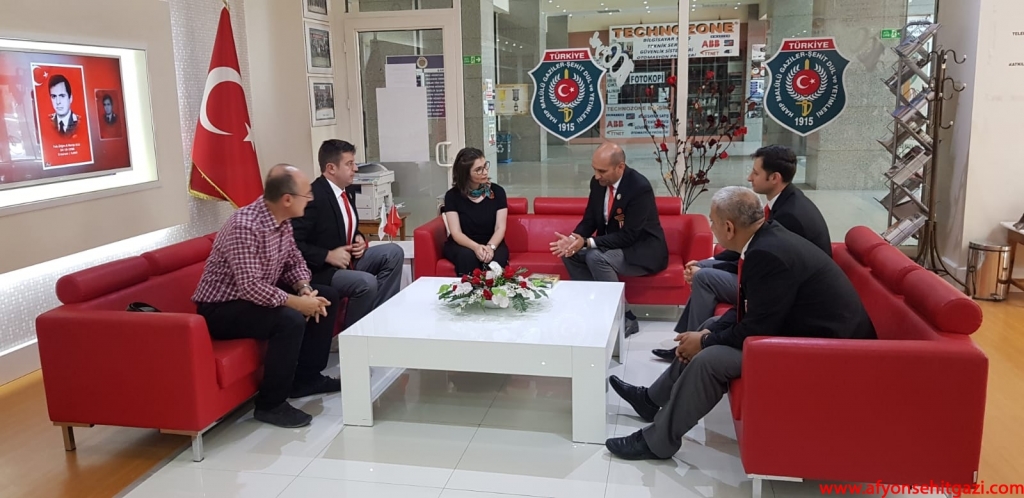 Türkiyede ilk defa Malül Gaziler Hakkında Akademik bir çalışma yapan Afyon Kocatepe Üniversitesi Öğretim Görevlisi Dr.Feyza Kurnaz Şahin Türkiye Harp Malulü Gaziler Şehit Dul ve Yetimleri Derneği Afyonkarahisar Şube Başkanı İsmail Kumartaşlı yı ziyaret etti.