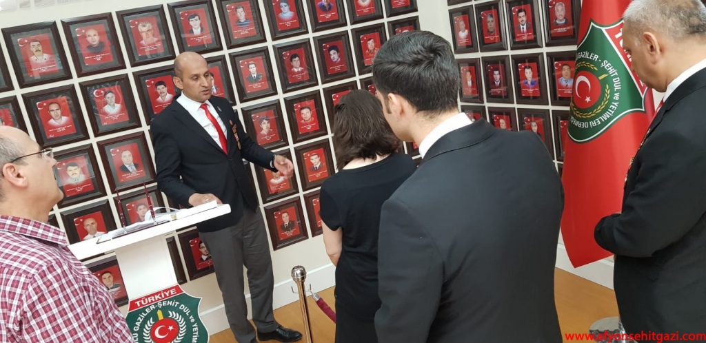 Başkan Kumartaşlı ve beraberindeki Şehit Aileleri ve Gaziler tarafından karşılanan Şahin dernek binasında bir süre Şehit Aileelri ve Gaziler ile görüş alışverişinde bulundu.Kumartaşlı bu günkü Malül Gazilerimiz hakkında bilgiler verilirken Dr.Şahin 1900 lü yıllardaki tedavi şekilleri,maluliyet işlemleri hakkında bilgiler verdi.