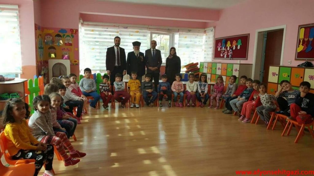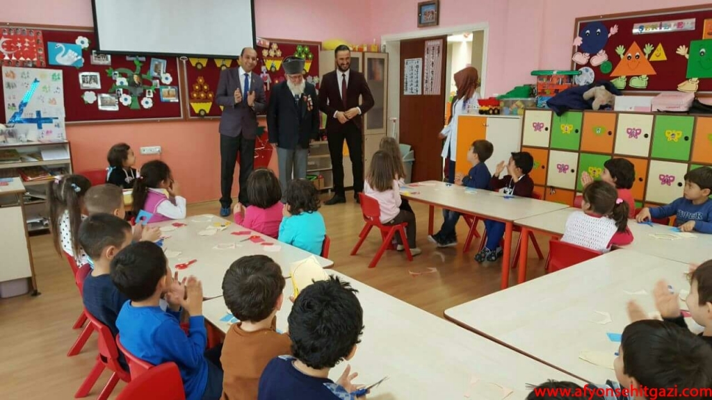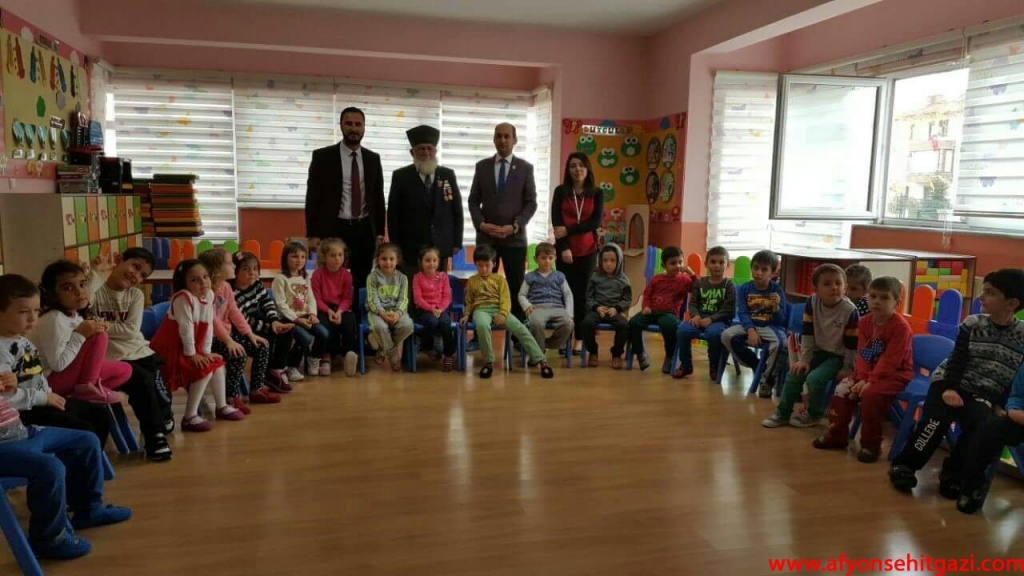 Emine Efiloğlu Anaokulu öğrencileri gazileri ağırladı. Emine Efiloğlu Anaokulu öğrencileri Türkiye Harp Malulü Gaziler Şehit Dul ve Yetimleri Derneği Şube Başkanı Malül Gazi İsmail Kumartaşlı ve Kıbrıs Gazisi Tahsin Koç ile buluştu.