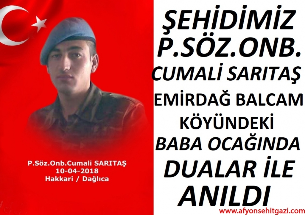 Hakkâri’nin Dağlıca bölgesinde, nöbet sırasında şehit olan Piyade Sözleşmeli Er Cumali Sarıtaş şehadetinin yıl dönümün de baba ocağı Emirdağ ilçesine bağlı Balcam köyünde Mevlid’i Şerif okutularak dualar ile anıldı.