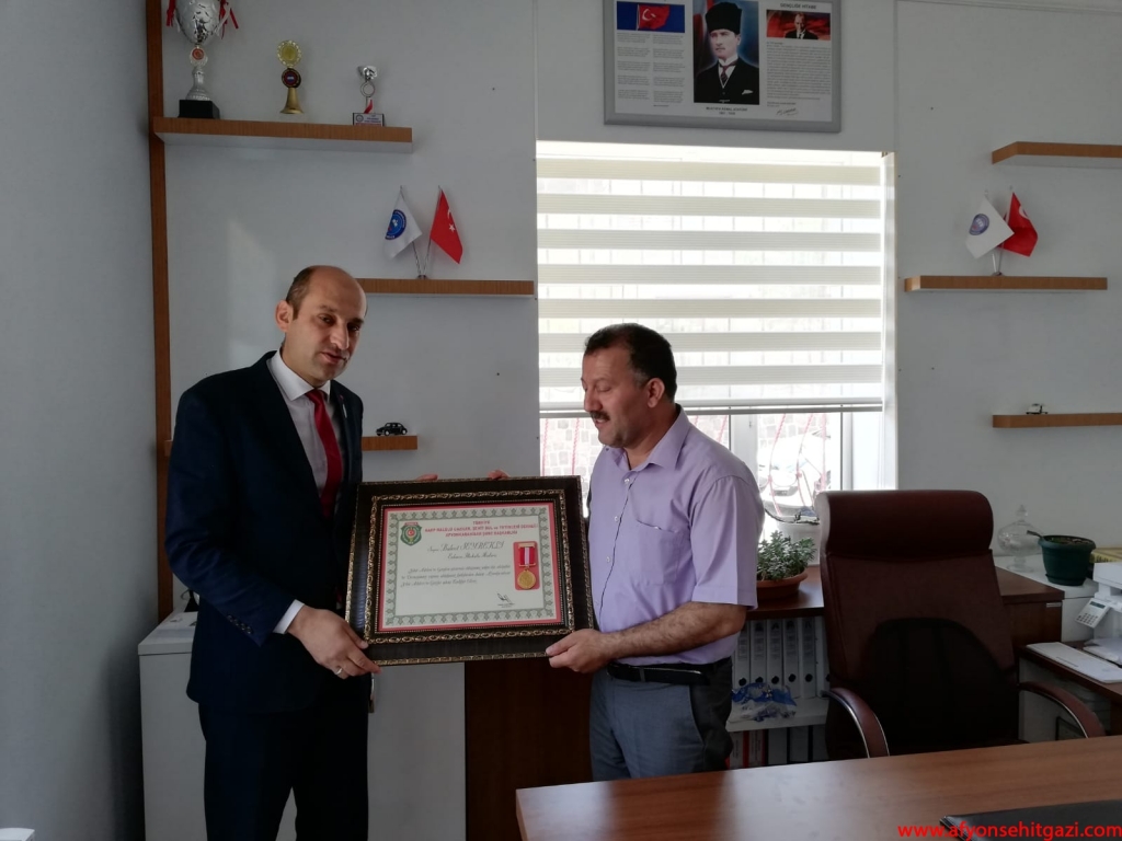 Törende konuşan Türkiye Harp Malülü Gaziler Şehit Dul ve Yetimleri Derneği Afyonkarahisar Şube Başkanı İsmail Kumartaşlı öğrencilere ve okul yönetimine bu hassas davranışlarından dolayı şehit aileleri ve gaziler adına teşekkür ederek plaket takdim etti.
