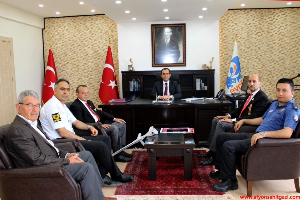 Evciler Kaymakamı Abdullah YÜKSEL’i Türkiye Harp Malülü Gaziler Şehit Dul ve Yetimleri Derneği Afyonkarahisar Şube Başkanı İsmail KUMARTAŞLI ,Türkiye Harp Malülü Gaziler Şehit Dul ve Yetimleri Derneği Dinar Temsilcisi Hasan CEYLAN, Dazkırı temsilcisi Gazi Muharrem AYDIN ve Şehit Babası Muzaffer Birgül ziyaret etti.