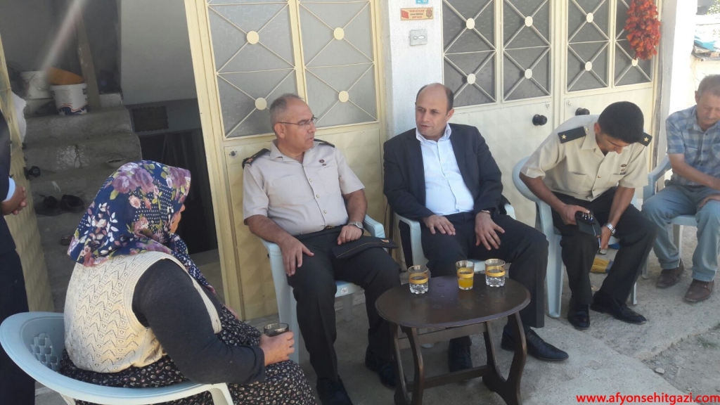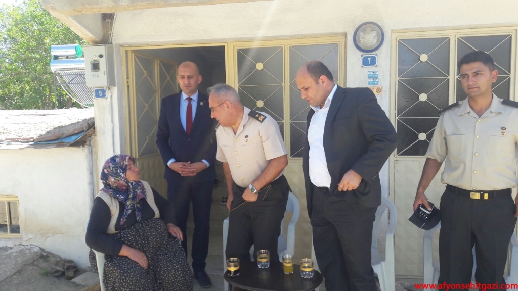 Afyonkarahisar İkmal ve Garnizon Komutanlığına yeni atanan Gazrnizon Komutanımız Afyonkarahisar İkmal ve Garnizon Komutanı Tuğg. Özdemir ŞAN Göreve başlayalı 13 gün gibi kısa bir süre olmasına rağmen tüm tören ve programlarının yanı sıra Şehit Ailelerimiz ve Gazilerimizi hiç yalnız bırakmıyor.Komutanımız son olarak Derneğimiz Türkiye Harp Malulü Gaziler Şehit Dul ve Yetimleri Derneği Afyonkrahisar Şube Başkanı İsmail Kumartaşlı ile 09.05.2005 tarihinde Şırnak Güçlükonak’ ta (Gabar dağı) şehit olan şehit P.Er Uğur Gencellinin Çay Akkonak köyündeki annesi Emine Gencelliyi ziyaret etti.3 yıl önce vefat eden şehit Babamız ismail Gencelliyi ve Şehidimizi rahmet ile andı.Ziyarete Çay İlçe Kaymakamı Turan ERDOĞAN’da katıldı.