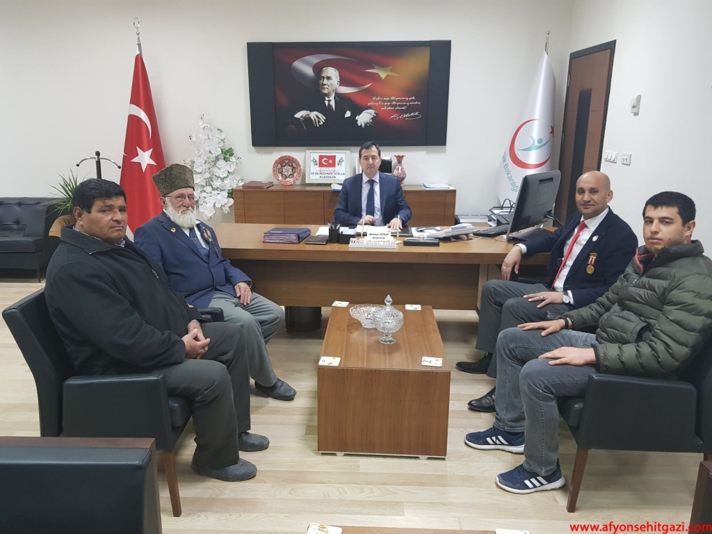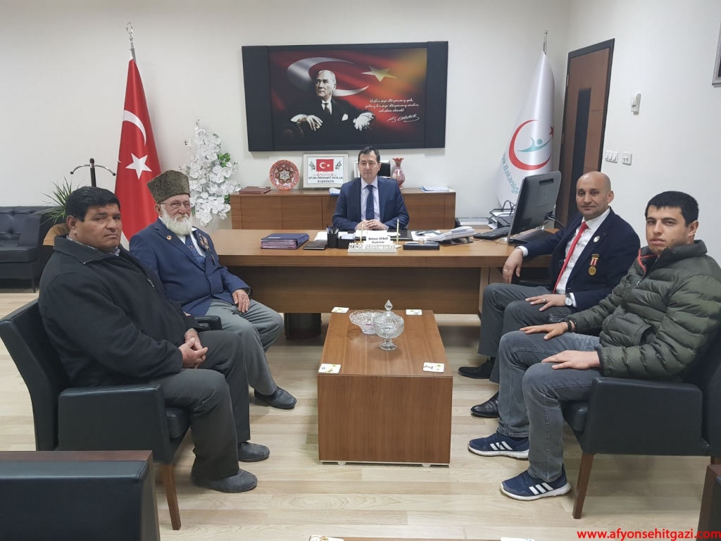 Türkiye Harp Malulü Gaziler, Şehit Dul ve Yetimleri Derneği Afyonkarahisar Şube Başkanı İsmail Kumartaşlı, Kıbrıs Gazisi Tahsin Koç ve Afrin Gazisi Uzman Çavuş Ömer Güneş, Afyonkarahisar Devlet Hastanesi Başhekimi Göğüs Cerrahi Uzmanı Dr.Mehmet Duran’ı makamında ziyaret ettiler.