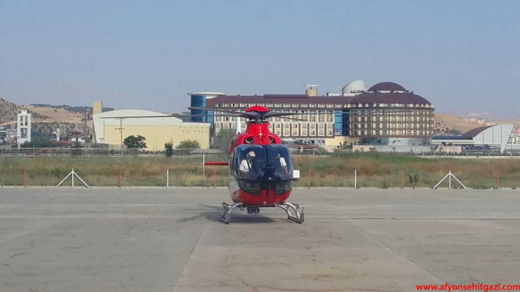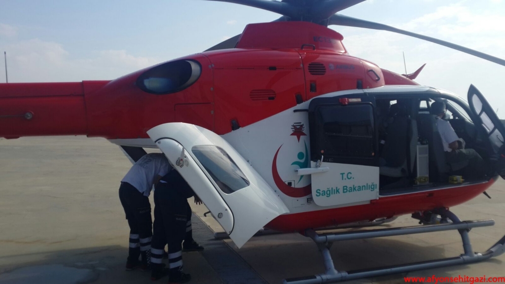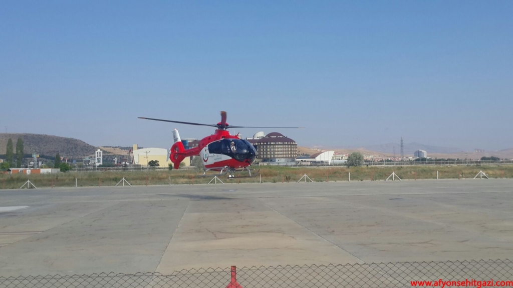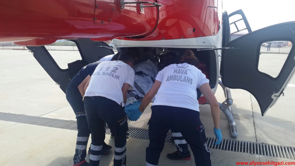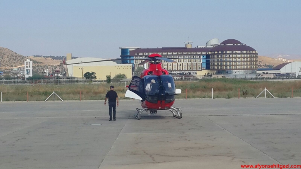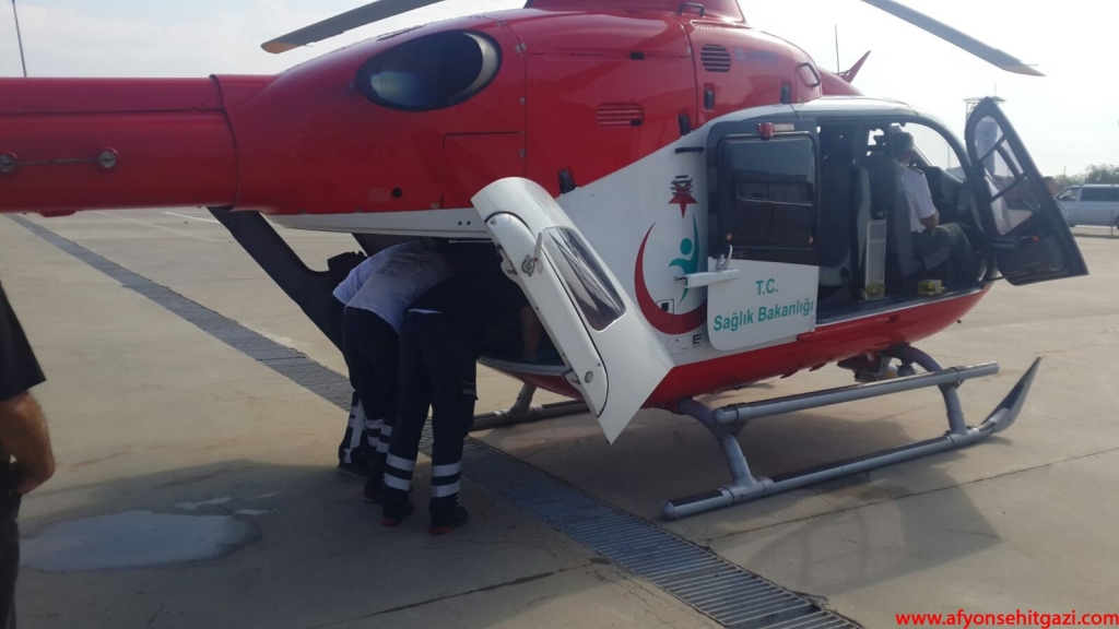 Afyonkarahisar 112 Hava Ambulansı merkezinde hazır bekleyen helikopter ambulans ile Ankara'ya sevki için hazırlık yapıldı.