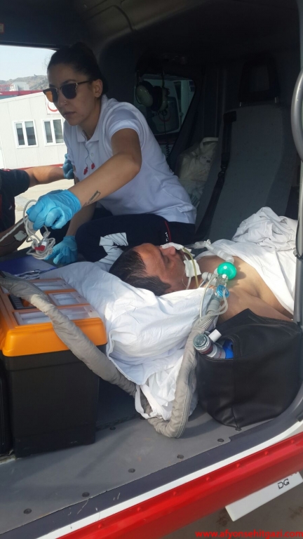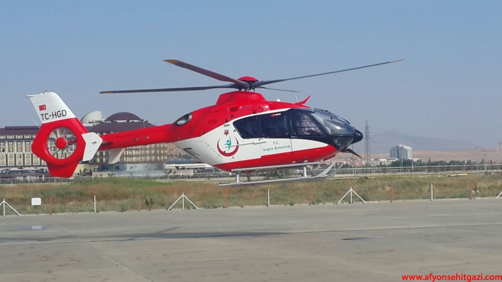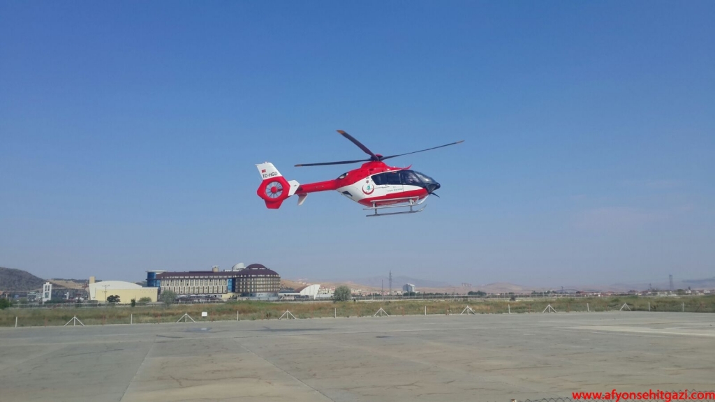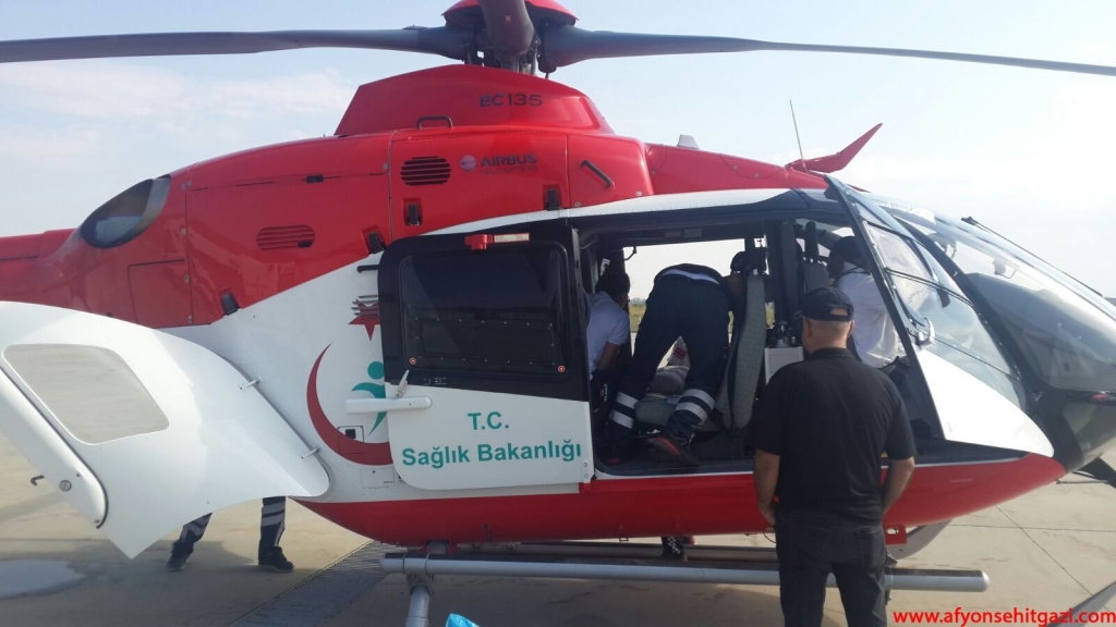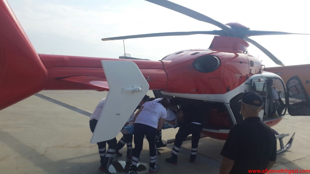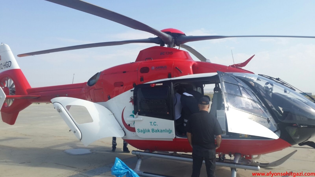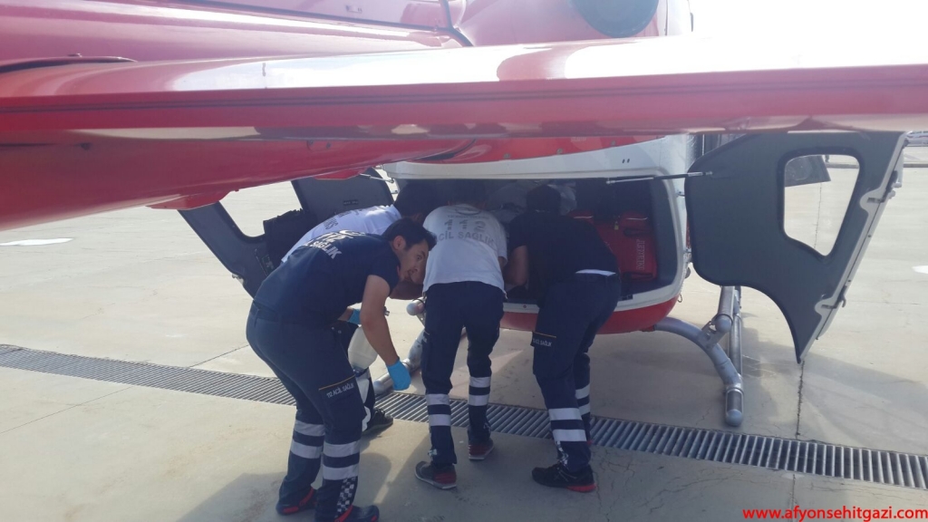 Afyonkarahisar 112 Hava Ambulansı merkezinde hazır bekleyen helikopter ambulans ile Ankara'ya sevki için hazırlık yapıldı.