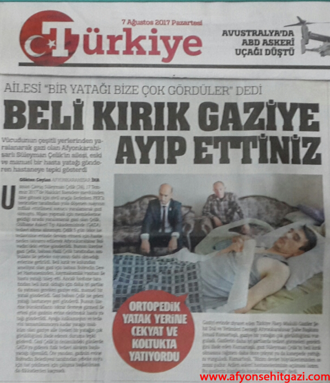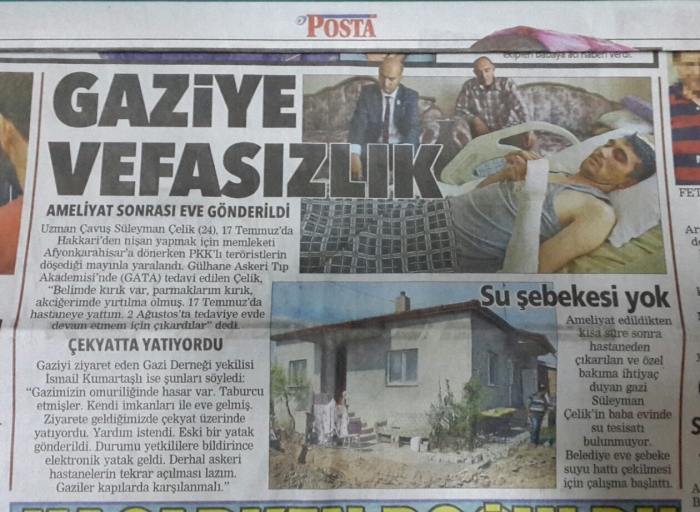 GAZİMİZ ULUSAL BASINA ÇIKINCA GEREKN İLGİYİ GÖRDÜ BU GÜN DEVLET HASTANESİNE GETİRİLİYOR.