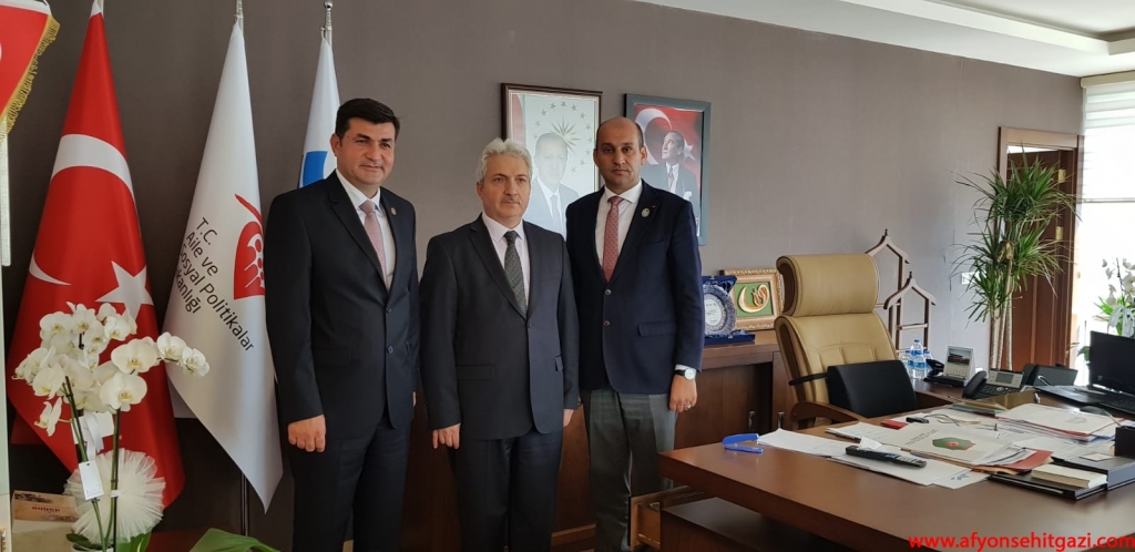 Türkiye Harp Malulü Gaziler Şehit Dul ve Yetimleri Derneği Genel Başkanı Malul Gazi Mustafa Işık,Afyonkarahisar Şube Başkanı İsmail Kumartaşlı ve yönetim kurulu üyeleri Aile Çalışma ve Sosyal Hizmetler Bakan Yardımcılığına atanan Afyonkarahisar 22 ve 23 ncü dönem Ak Parti Milletvekili Ahmet Koca’yı makamında ziyaret etti.