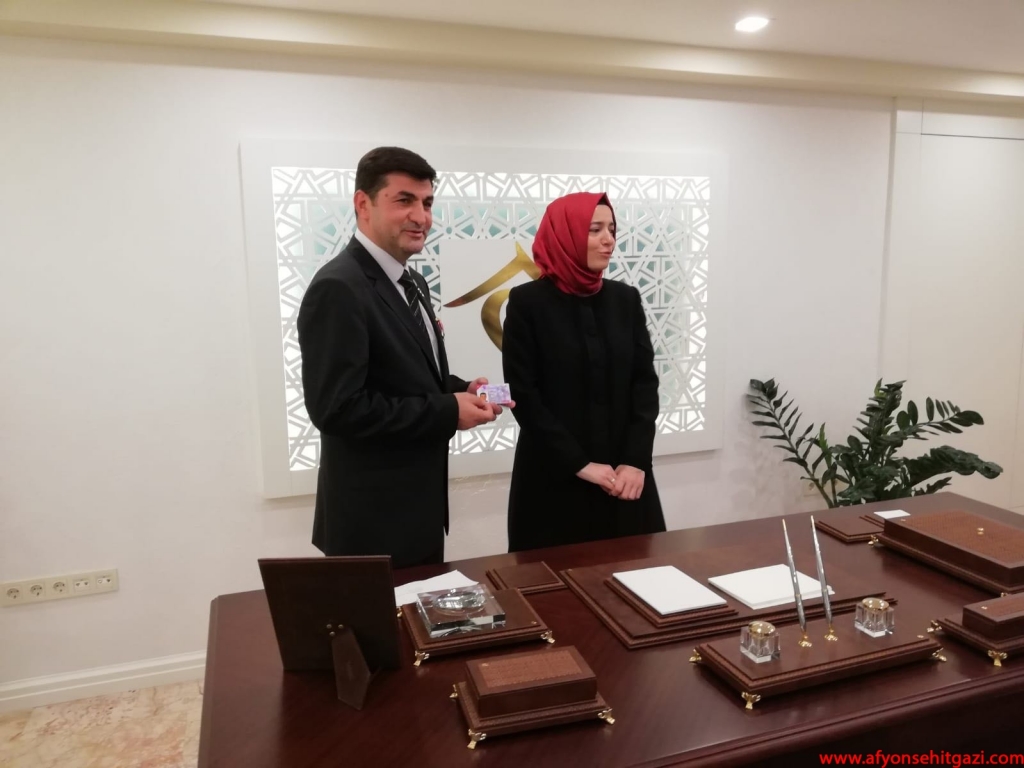 Genel başkanımız Mustafa Işık’a bakan Sayan Kaya yeni kimlik kartını takdim etti.Aile ve Sosyal Politikalar Bakanı Fatma Betül Sayan Kaya, Şehit Aileleri ve Gazi kartları arasında 15 Temmuz sonrası oluşan farklılıkların kaldırılarak tek tip kart oluşturduklarını daha önceki bir iftar programında açıklamıştı.Aile ve Sosyal Politikalar Bakanı Fatma Betül Sayan Kaya, 15 Temmuz sonrası gazi tanıtım kartlarında bir farklılık oluştuğunu belirterek, "Biz gazi kartlarında oluşan bu farklılığı gidermek için Aile Bakanlığı olarak çalıştık. Bu çalışmalarımızın neticesinde sizlerin kartlarını tek bir şekle kavuşturduk." dedi.