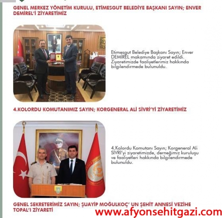 Afyonkarahisar Şube Başkanlığı ve Dernek Üyeleri olarak Genel Başkanımıza çalışmalarından dolayı teşekkür eder, başarılarının devamını dileriz.