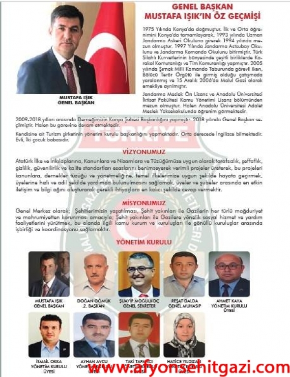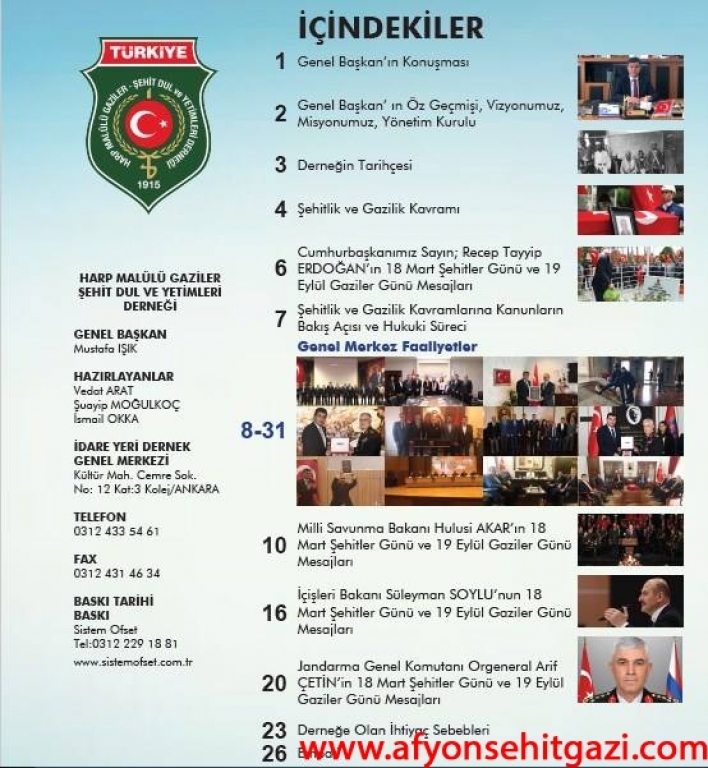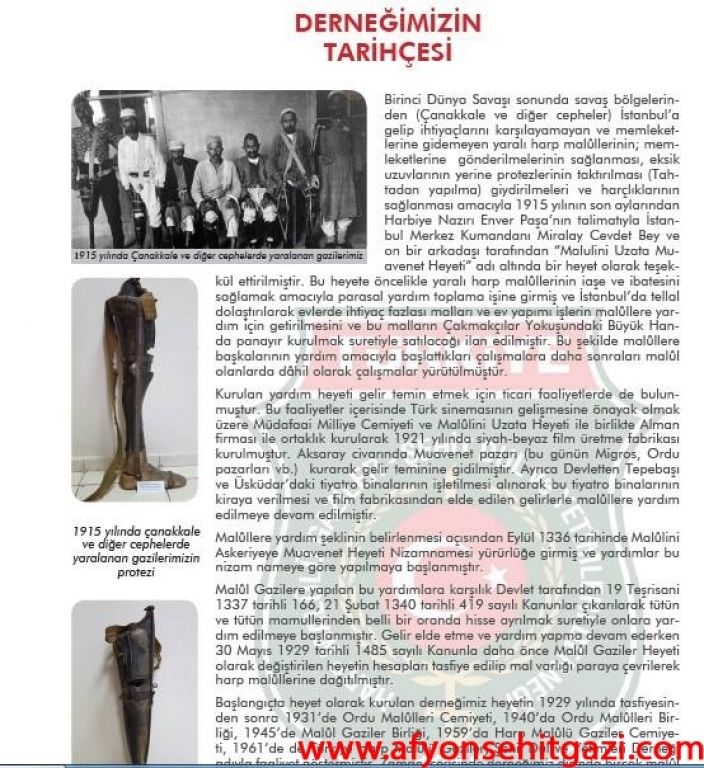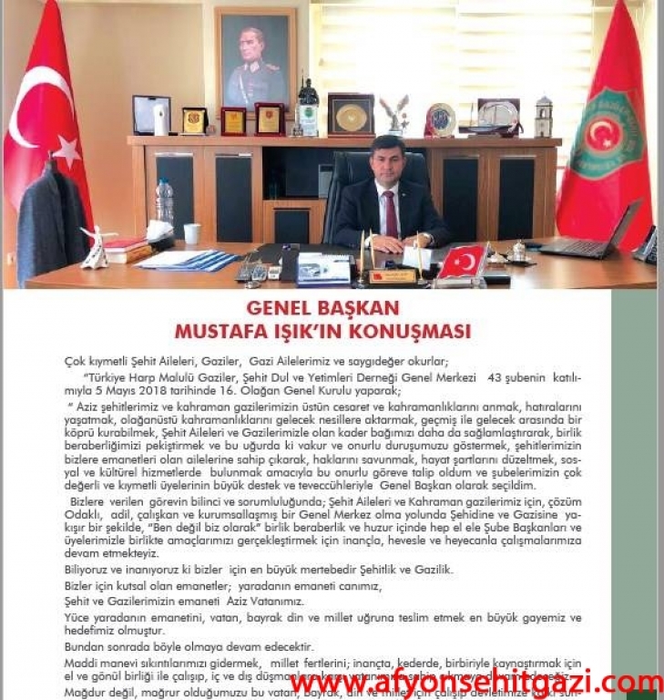 Derneğimiz Türkiye Harp Malulü Gaziler Şehit Dul ve Yetimleri Derneği Genel Başkanı Malul Gazi Mustafa IŞIK göreve geldiği günden itibaren yaklaşık bir yıl içerisinde Kanuni Gelişmeleri Hakkında, Derneğimizin Tanıtımı Hakkında, Tören Kıyafetlerimiz, Rozetlerimiz, Dergi dizaynı ve basılması,Madalyalar konusunda sayısız çalışmaya ve başarıya imza atı.
